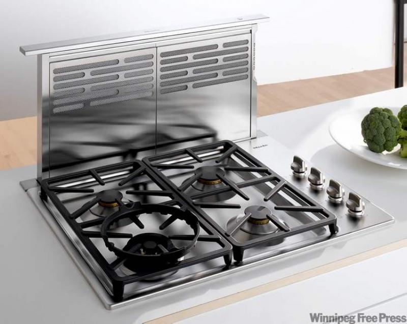Even kitchen fans are being hidden. Miele, for example, was showing a prototype fan that folds up into a glass panel when not in use. Another Miele fan, a model being launched in Canada this year, pops up vertically out of the counter when needed and pops back down when not wanted (it sits behind the stove, not above it).