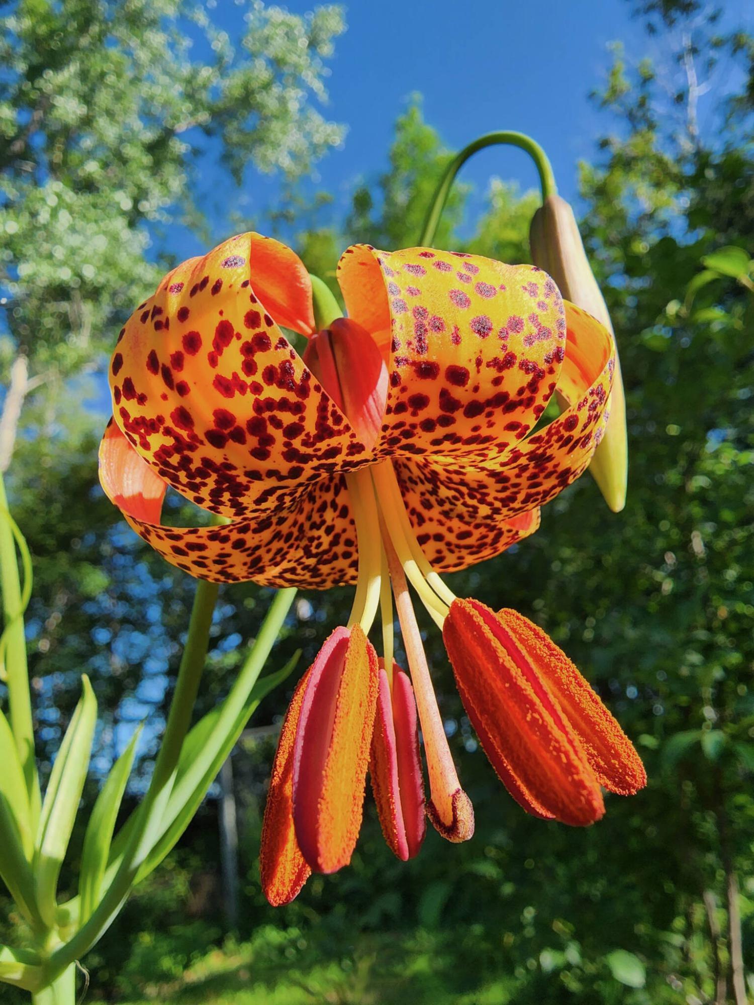 Ed Robinson was a lily breeder from Wawanesa who has also had tremendous influence on Dowd. Her first introduction to lilies was through his vast collection. “I think that’s where my love affair with martagon lilies started.” The pendulous flowers of Lilium martagon, also known as Turk’s-cap, start to bloom at the end of June. Martagon lilies bring exotic beauty to the shade garden. What other shade plant would give you the satiny purplish pink colour of Moonyeen or the vivacious orange of Lilium michiganense (Michigan lily)? “Martagon lilies have such a statuesque beauty,” says Dowd. “They can grow anywhere from two to six feet in height (60 cm to 1.8 metres) with up to 50 blooms. They are a flower unlike any other that you will have in your garden, and they provide a focal point but also combine well with other plants.” The martagon has a delicate beauty, but also impressive resilience. Martagon bulbs have contractile roots with the unique ability to work their way down to an ideal spot in the soil. They come back year after year and do marvellously well in your garden beds for 30 or 40 years without being moved, says Dowd.