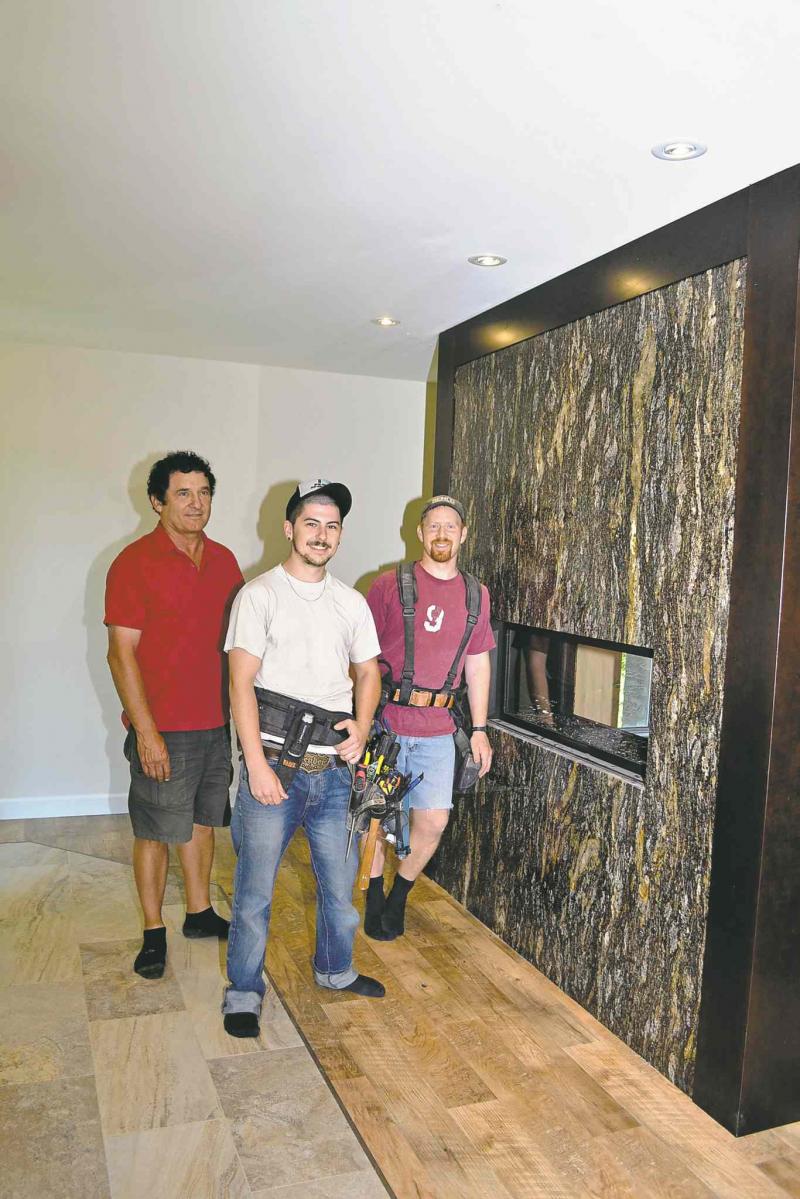 RB Millwork also installed a fireplace at the main entrance that has exotic black-granite slabs on both sides; each slab weighs about 900 pounds.