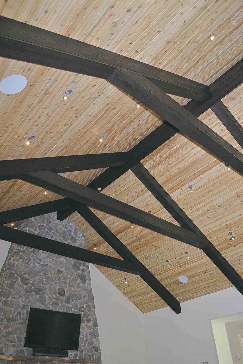 As of the end of July, Larwyn and his crew had completed most of the reno including a large extension to the kitchen, a theme room dubbed "The Cabin" as well as a great room with a cedar cathedral ceiling and a 30-foot-high stone fireplace.
