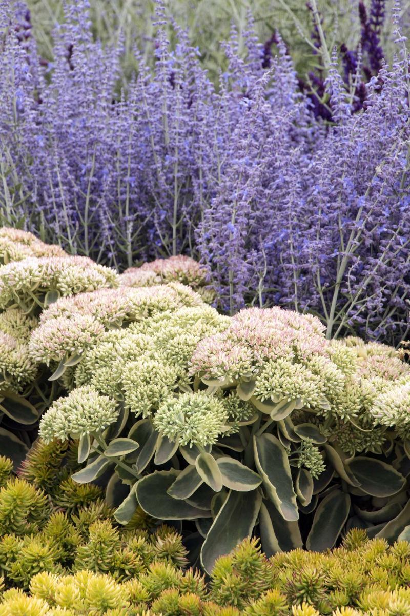 Russian Sage — Another sun-loving, drought-tolerant perennial, Perovskia atriplicifolia Russian Sage is enjoying a resurgence of interest in recent years by gardeners, landscape designers, and plant breeders. We love Russian Sage for its late-season show of masses of tiny, lavender-blue flowers with a touch of indigo growing against silver-white stems and lightly fragrant grey-green leaves.