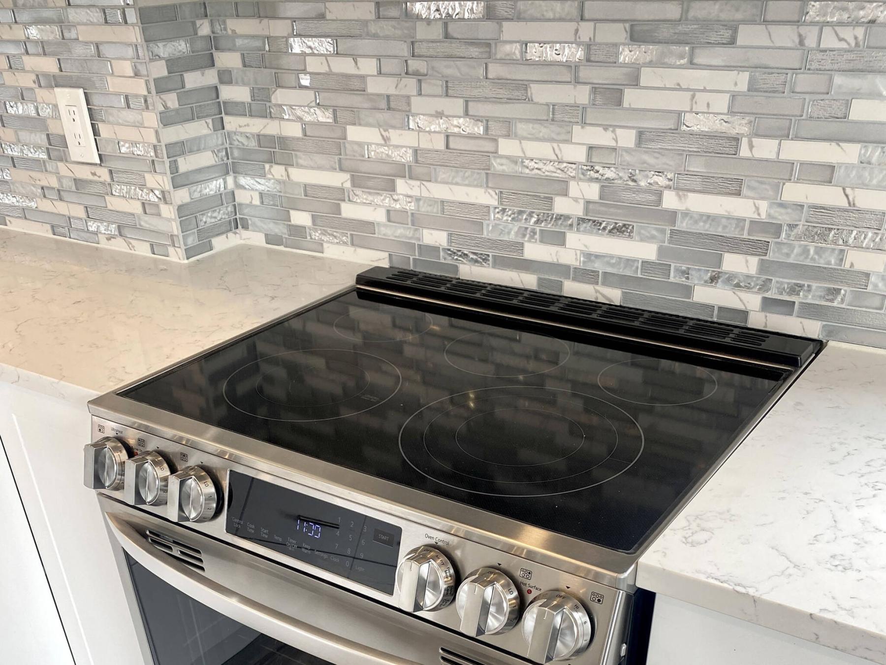 The flat bottoms and tops of the sheets allow for efficient installation, with minimal cuts required unless allowing for a wall outlet or reaching the end of the backsplash area. Furthermore, because the horizontal rows are so narrow, it’s easy to eliminate the necessary rows to reach the likely 18-inch height to the underside of upper cupboards without having to cut any tiles.