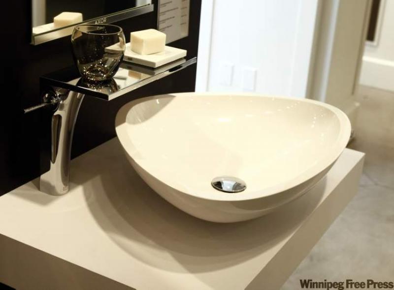 Mondeau's showroom sales manager Denis Seguin demonstrated the hands-free option by lightly tapping the arched faucet with his hand, prompting the water to instantly turn on and off.