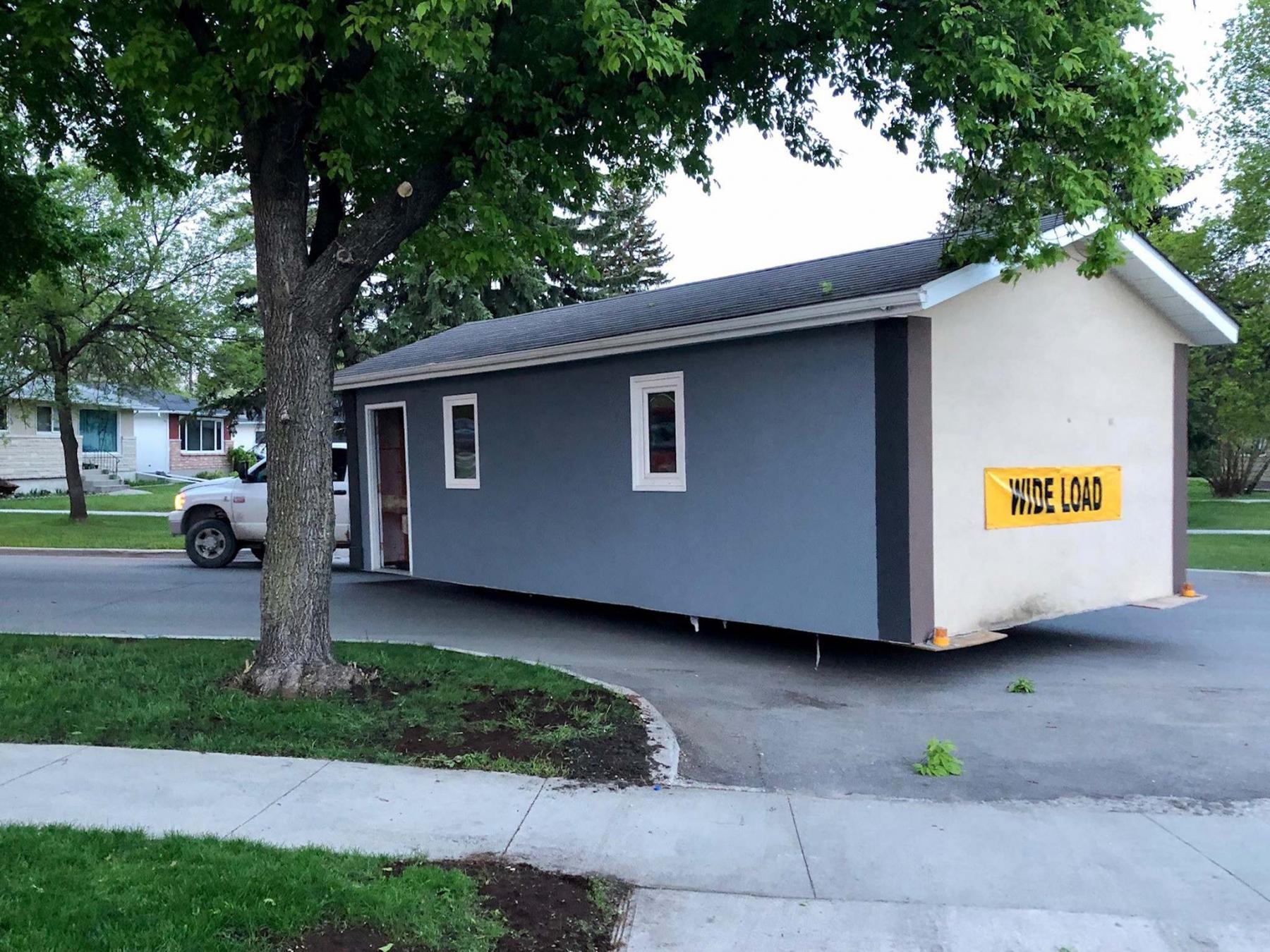 As fate would have it, Delisle was able to sell the old single garage — avoiding having to tear it down and have it hauled away as junk. After removing the electrical, and once the electrical was temporarily disconnected the moving company simply lifted the garage up from the concrete pad and hoisted it onto a hauling trailer. Within a few hours, only the 14-foot by 28-foot pad remained.