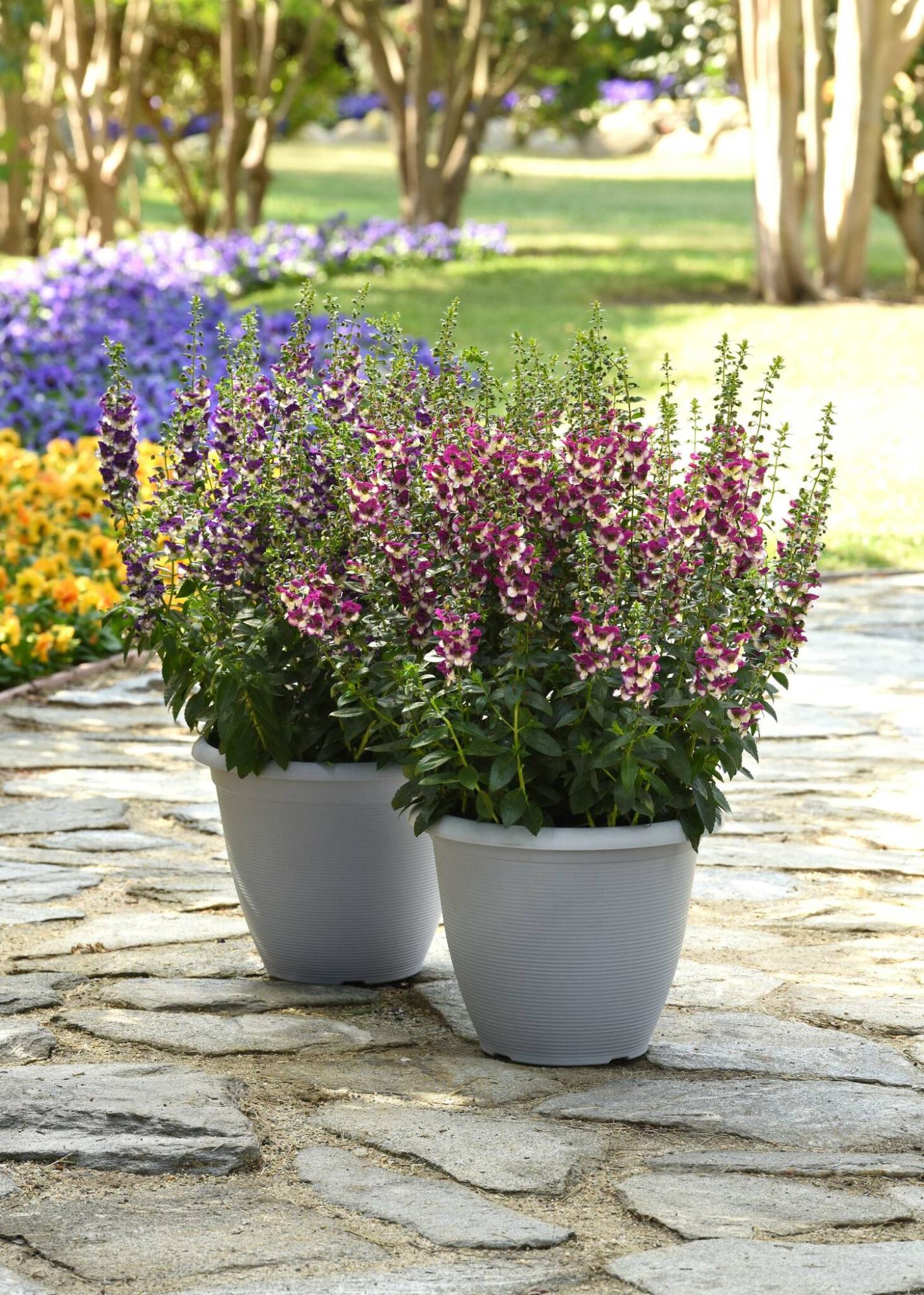New for 2023, Angelonia AngelDance Fuchsia Bicolor and AngelDance Violet Bicolor thrive in heat and are deer-resistant, too.