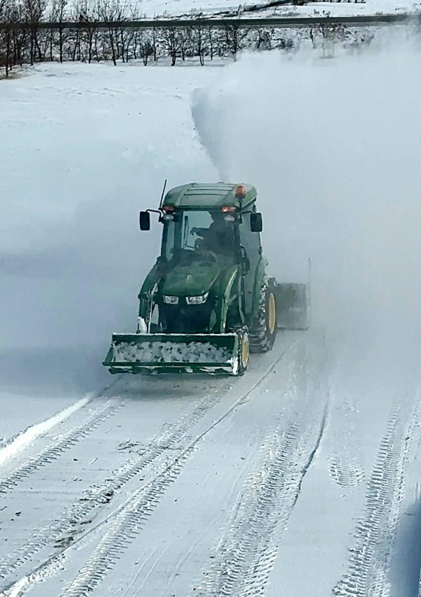 Aware of my property woes, and unbeknownst to me, Goeztzen had mentioned my troubles to management. Without any requests from me, an unexpected and wonderful offer was presented. Because I had chosen to pursue the 3046R tractor upgrade, Enns Brothers would absorb the costs of the 1025R repairs within the deal so I could avoid any out-of-pocket expenses until the new tractor arrived. And furthermore, the 1025R with front bucket re-mounted would be returned to my property for usage until the new tractor was delivered. It was an amazing offer — not only was my new tractor on its way, but my old tractor was repaired and returned to me for use in the interim. This is the true definition of “above and beyond”, in my eyes. Once the 1025R was back on property in late March, I could myself clear any newly formed drifts by using the bucket, much like the big front-end loaders used by the Baudry crews. A huge weight was lifted. Although it ultimately took me longer to clear than the big front-end loaders (due to the sheer size difference of the front bucket), the property was once again “self-sufficient”, and clearing would be managed in this manner for the duration of the winter.