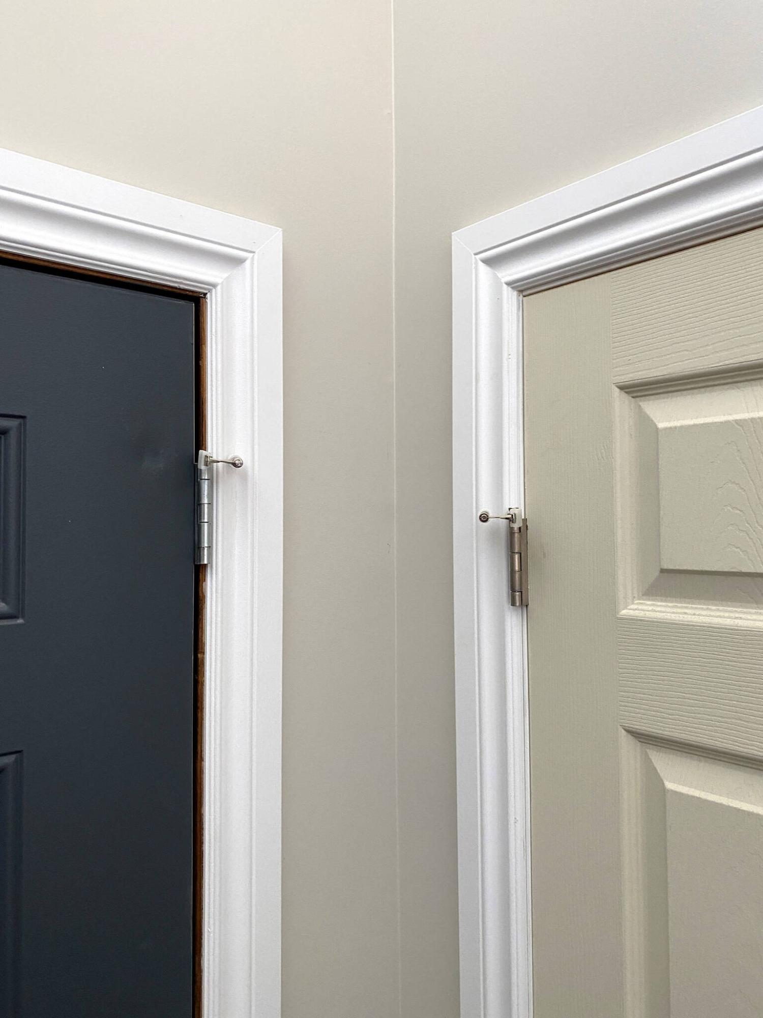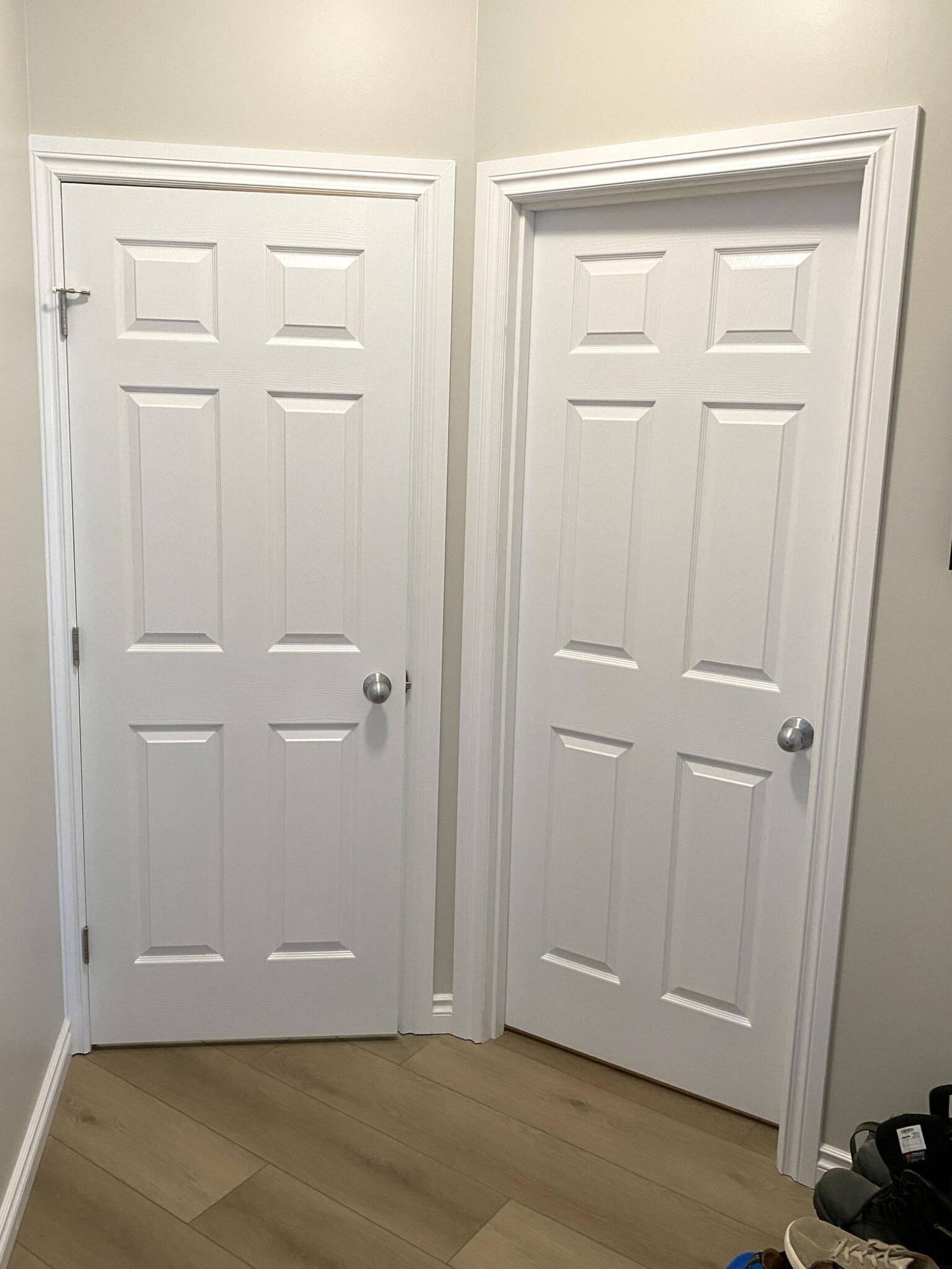Two six-panel doors replaced existing flat-panel doors for an updated look.