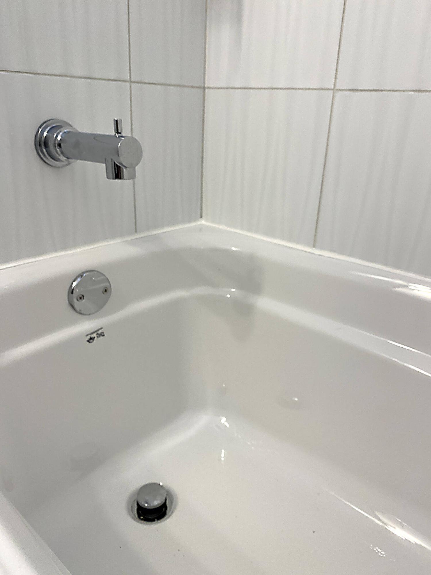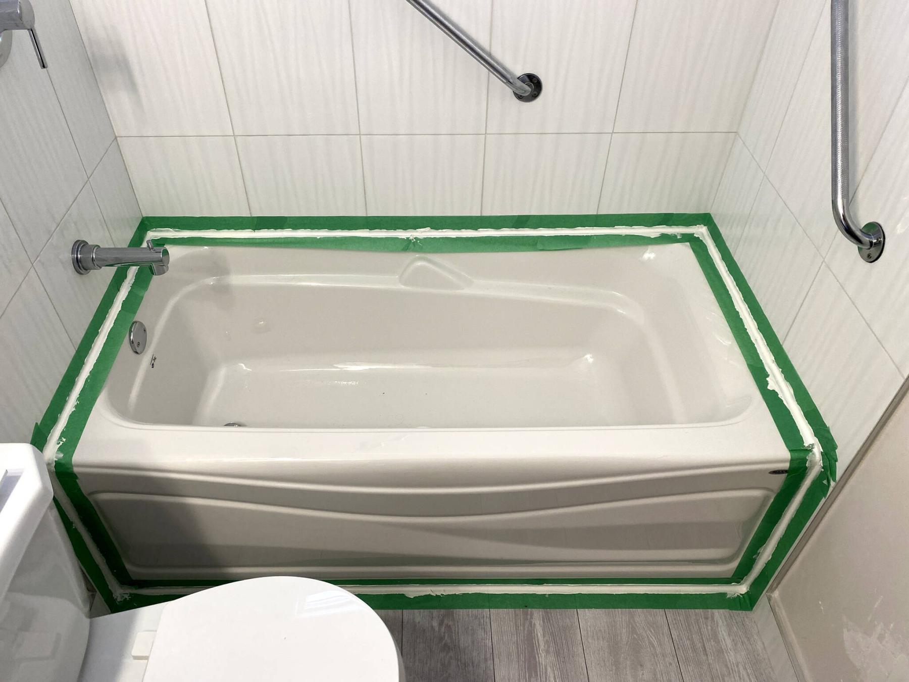 The silicone along the seam between the tub top and wall tile is highly visible, and should be applied carefully.