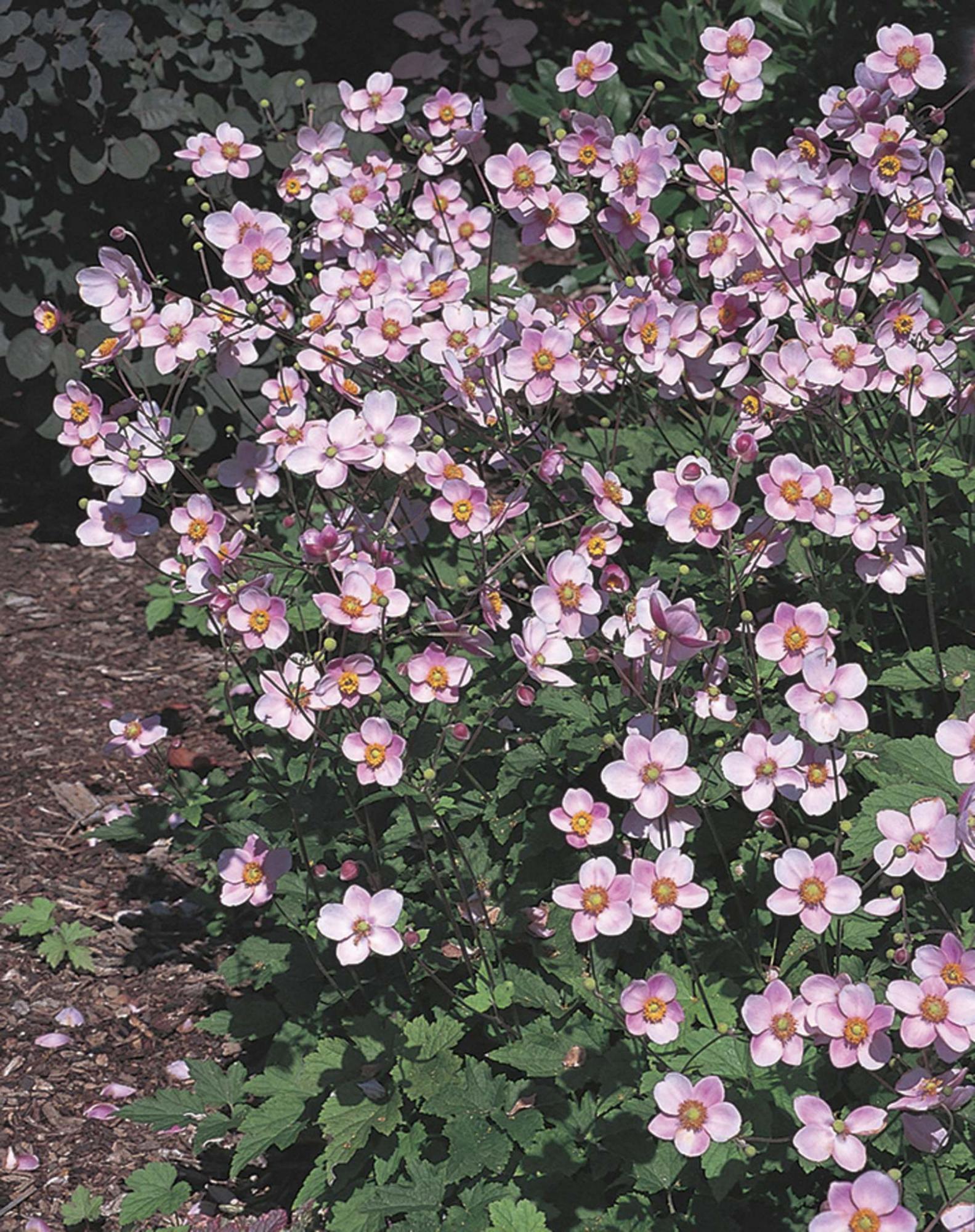 Pretty in pink, Grape Leaf anemone is one of the earliest autumn blooming anemones.