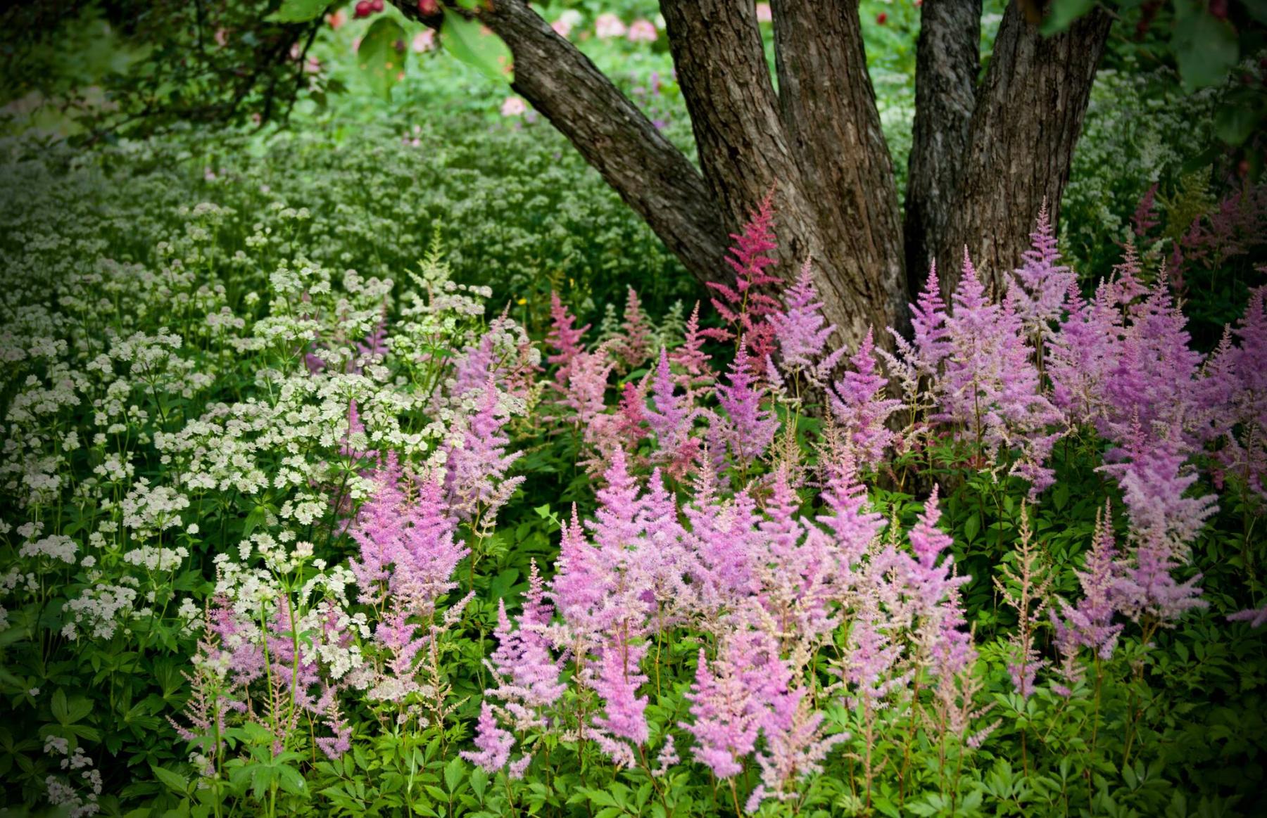 “Astilbe looks fabulous in a mass planting. We planted numerous astilbes last year in the English Garden. Now that there are varieties with dark burgundy foliage — Dark Side of the Moon, for example — it’s possible to create a different look.”