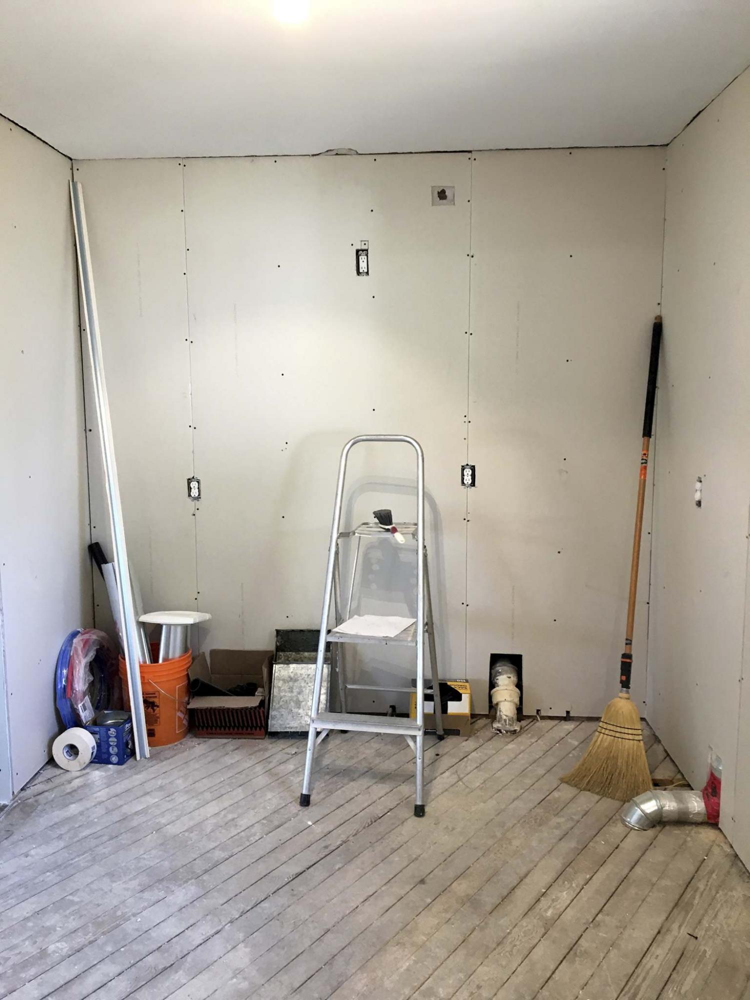 New drywall was hung before the homeowner completed the kitchen upgrade.