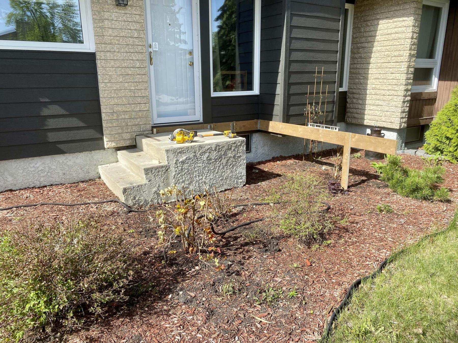 After assessing the condition of the concrete steps it was clear this chunk of concrete had not moved since installation. As such, and because the elevation would allow it, the concrete would remain in place as partial support for the newly designed treated lumber front porch to be installed, which would provide more than six times the existing top surface once completed.