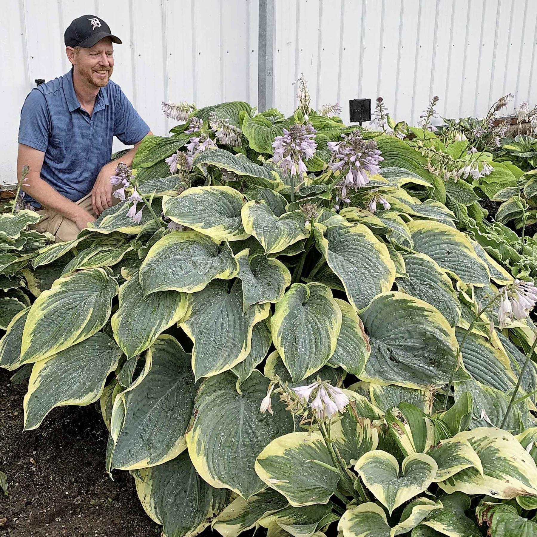 Two giant hostas from the Shadowland hosta series from Proven Winners will bring dramatic textural impact to part- or full-shade areas of your garden. Gigantosaurus, new for 2025, has a massive spread of 1.8-2 metres. Mature height is 76-81 cm. The large blue leaves feature a wavy yellow margin. In summer, the yellow margins turn to creamy white.