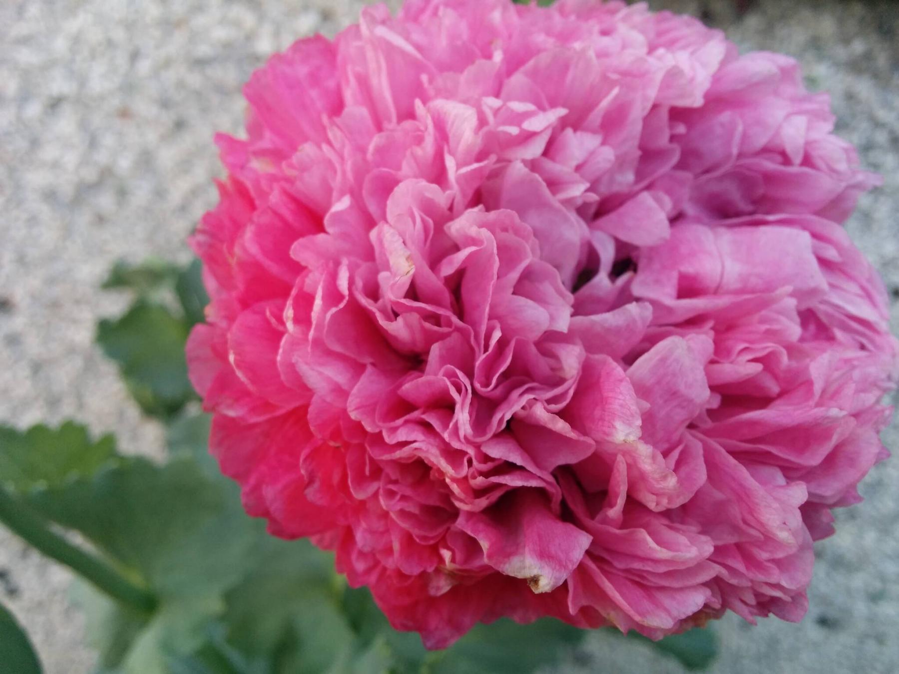 The unique flowerheads of Pinky Peony breadseed poppy are densely packed with ruffled petals on tall stems.