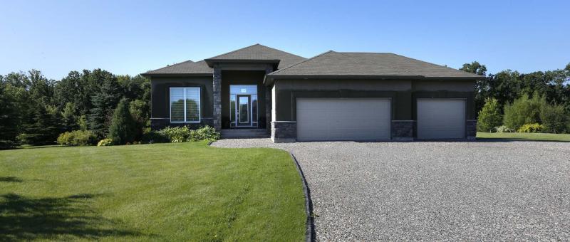 The 1,904 square foot bungalow — custom-built for the outgoing owners by Parkhill Homes in 2006 — is in superb condition. The two-acre lot that surrounds it is beautifully landscaped, framed by more than 75 trees and shrubs planted by the owners over the last decade. The home also backs onto the Seine River, which winds serenely past its rear portion amid a quaint stretch of mature forest.
