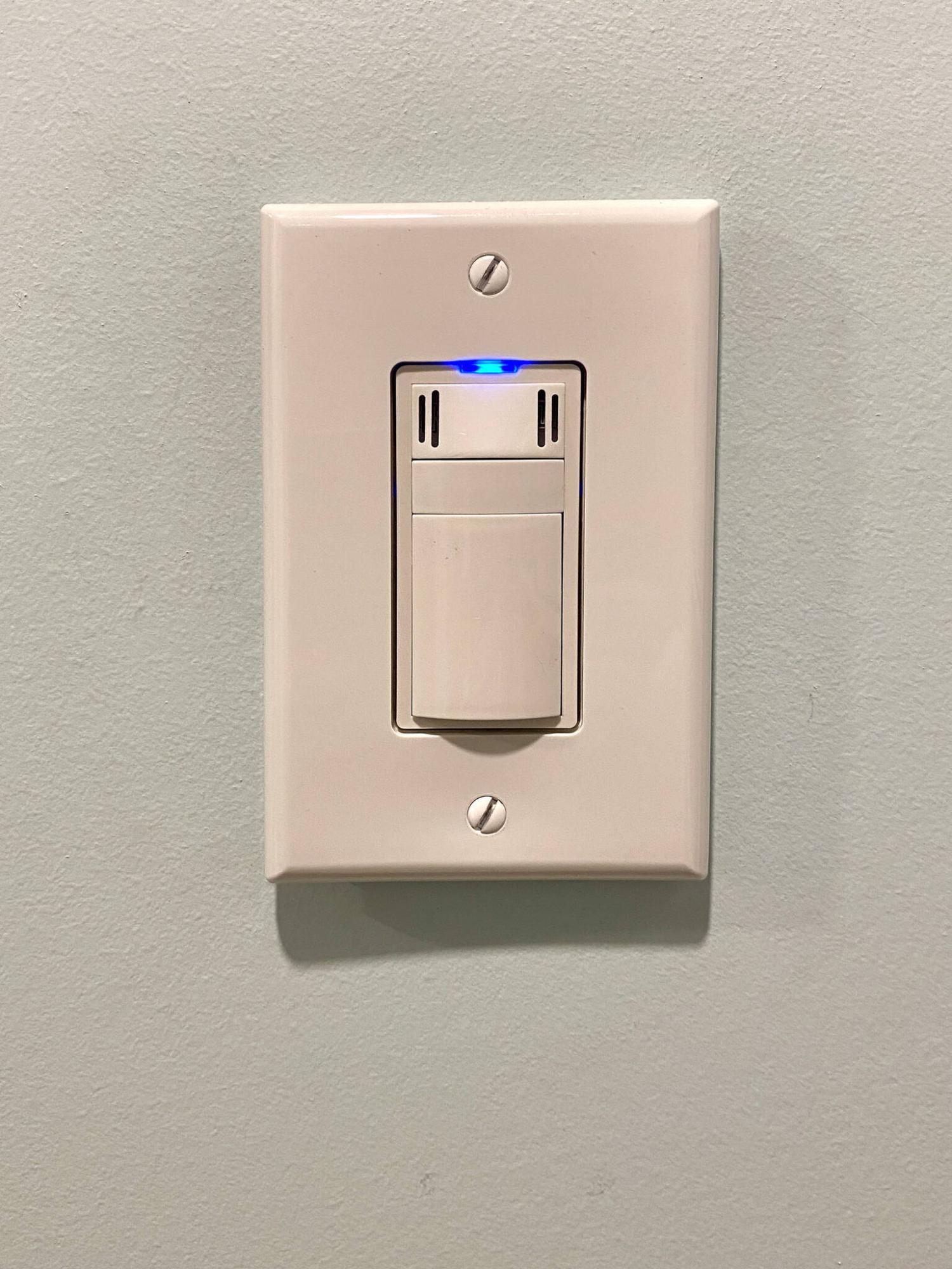 Upon testing the operation of the exhaust fan, as well as adjusting the moisture sensor switch to start the moment humidity became visible on the glass shower doors, the overall volume of humidity was greatly decreased during the period of hot water use. Moreover, the fan continued to run for nearly half an hour afterwards, until the sensor switch shut it off automatically, once moisture levels had dissipated adequately.