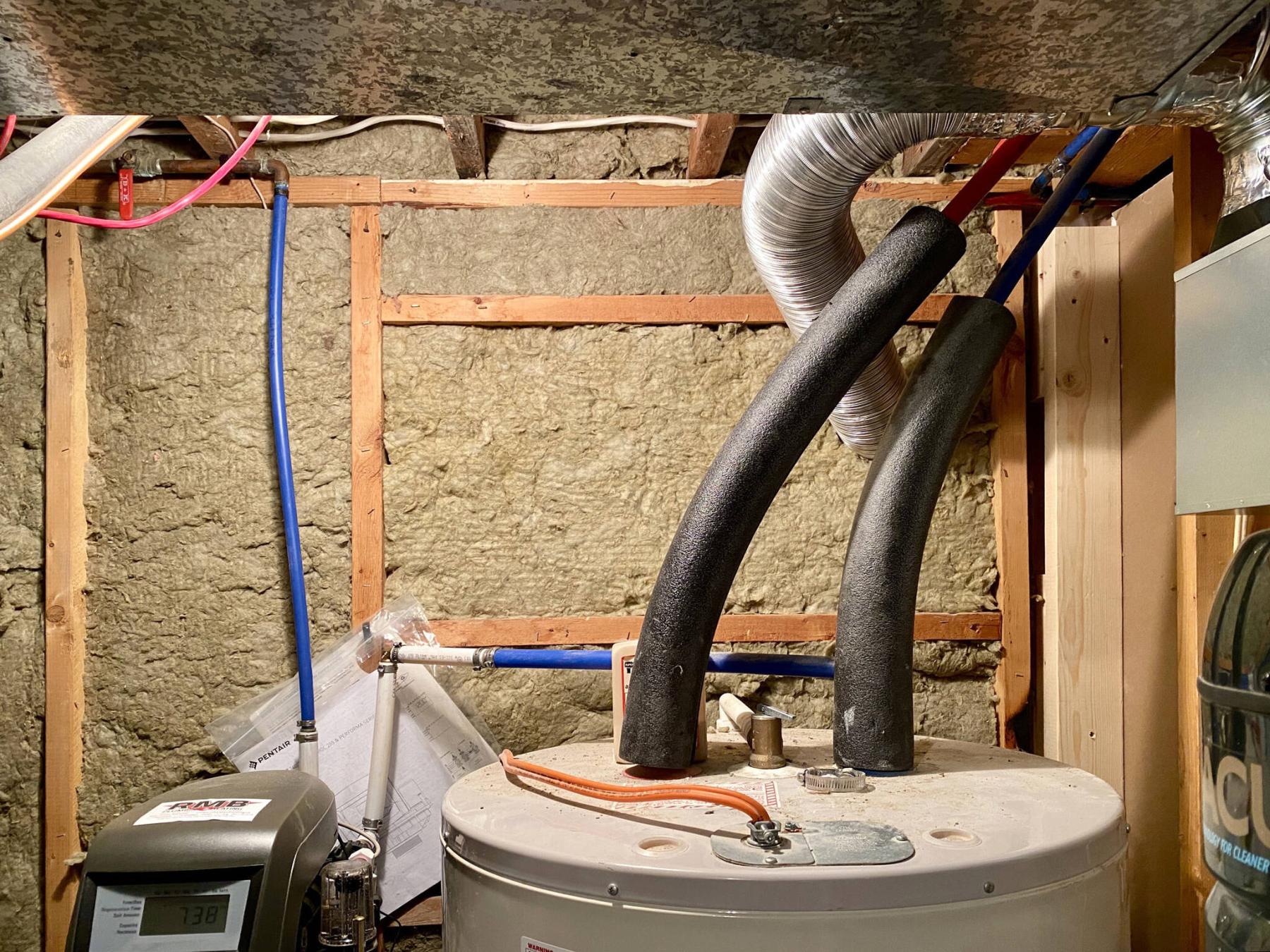 The small window behind the hot-water tank was permanently removed, allowing an easy path for the ducting to vent the new exhaust fan to the exterior.
