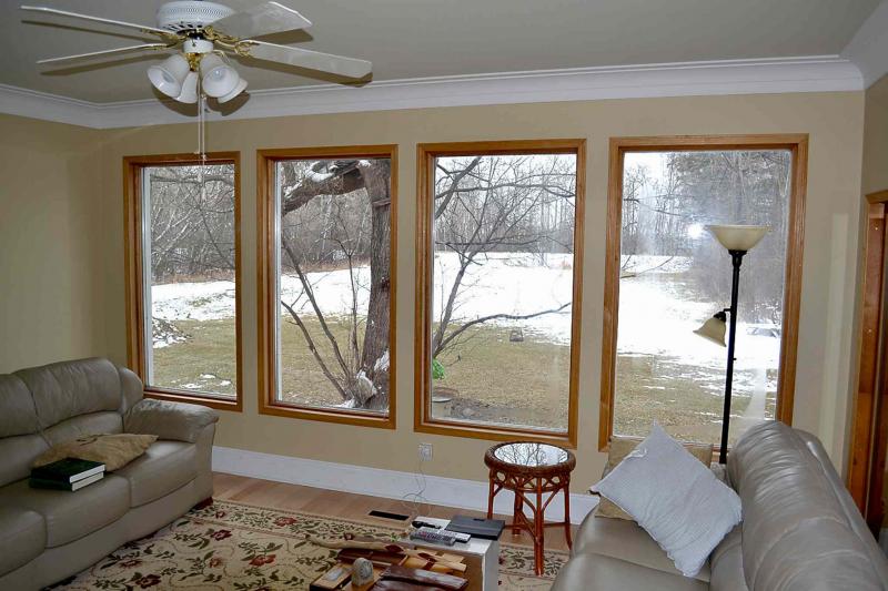 The room features four floor-to-ceiling windows, which look out on a front yard dominated by an enormous Manitoba maple tree that was just beginning its life when the house was built.