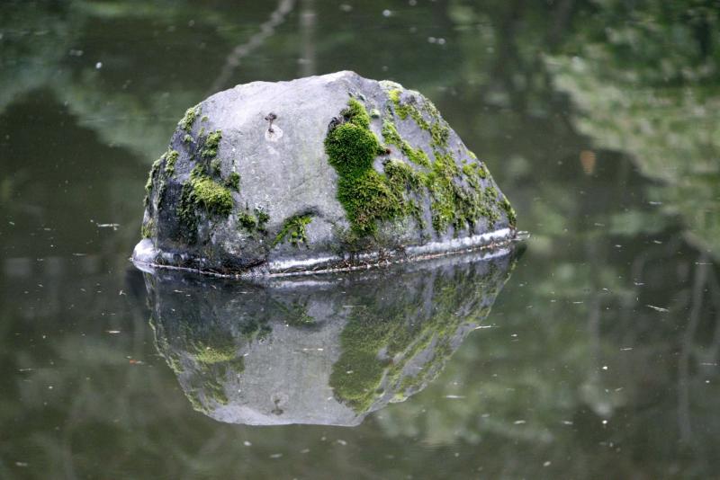 A moss-covered rock in the gardens.