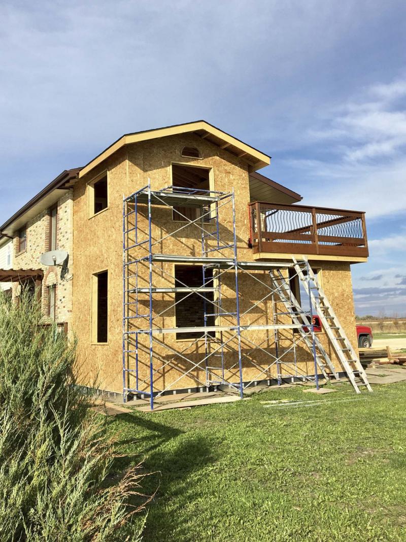 Scaffolding from J&M Rentals in Grunthal had been set-up to complete exterior OSB sheeting.