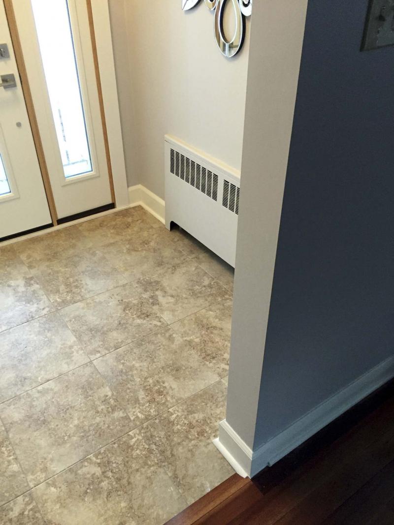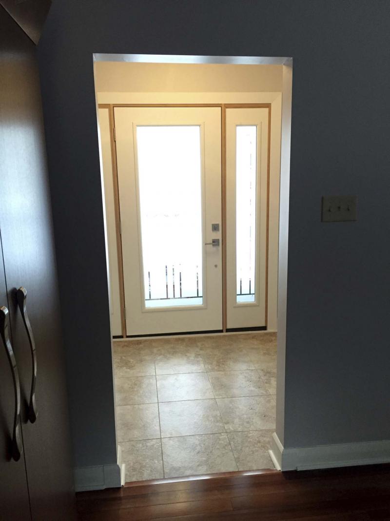 Luckily, all baseboards throughout the house were installed with a secondary quarter-round along the floor. By customizing how the quarter-round was affixed to the baseboard where the floor elevations shift, and by blending the quarter-round into the higher flooring, I was able to find a solution for the newly introduced continuous baseboards. And even if the baseboards in the foyer had matched the rest of the house, a workaround that was pleasing to the eye would have been difficult, due to the one-inch height difference in flooring. It was not an ideal situation, but Lakusiak was satisfied with the custom result — I was glad, because our options were quite limited. Overall, having successfully removed the interior door overshadowed any other issues that arose. Lakusiak finally had a functional and inviting space, and that’s all that mattered in the end.