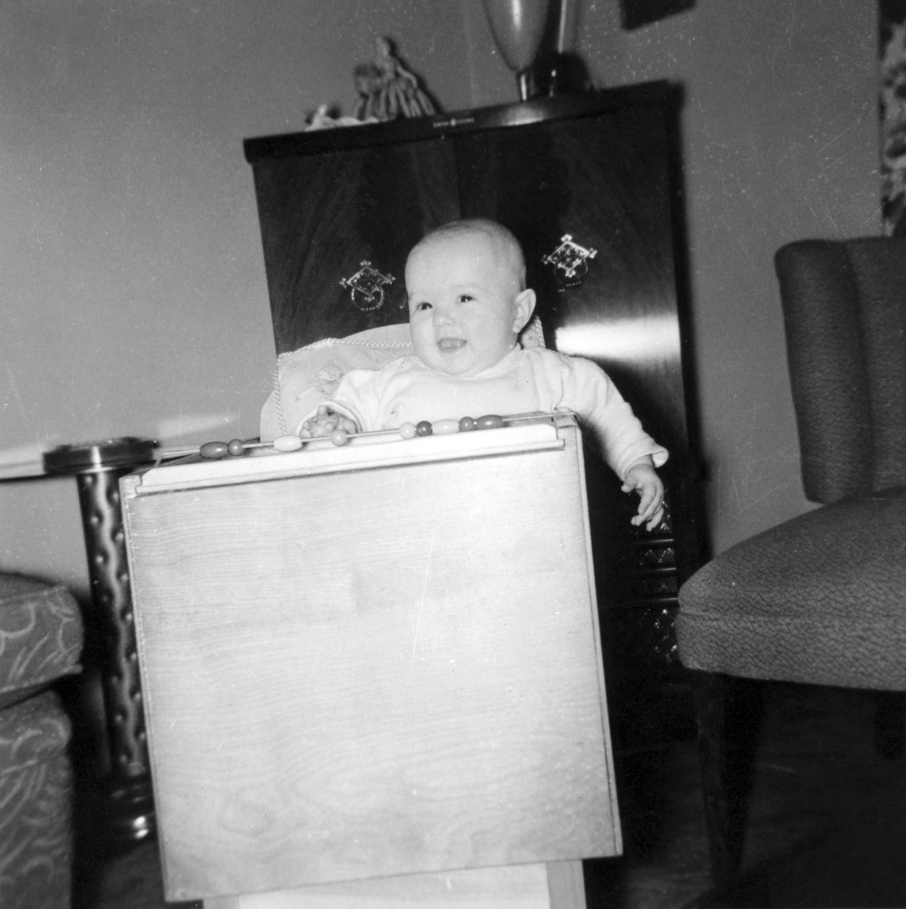 The photo with baby Diane, and the TV with doors closed in the background, was taken back about 1956, when Diane was one. She was a black and white baby then — these days she’s living in full colour.