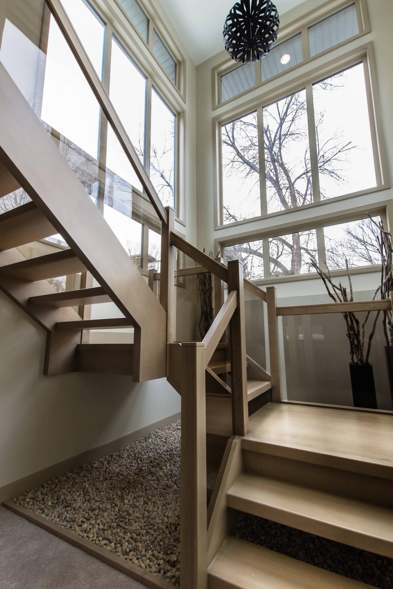 Says Lynn: Stairs (best yet) in our opinion are one of the most important parts of a home. Staircases also take up a lot of square footage. They are a major architectural feature that can make or break the design of the house.