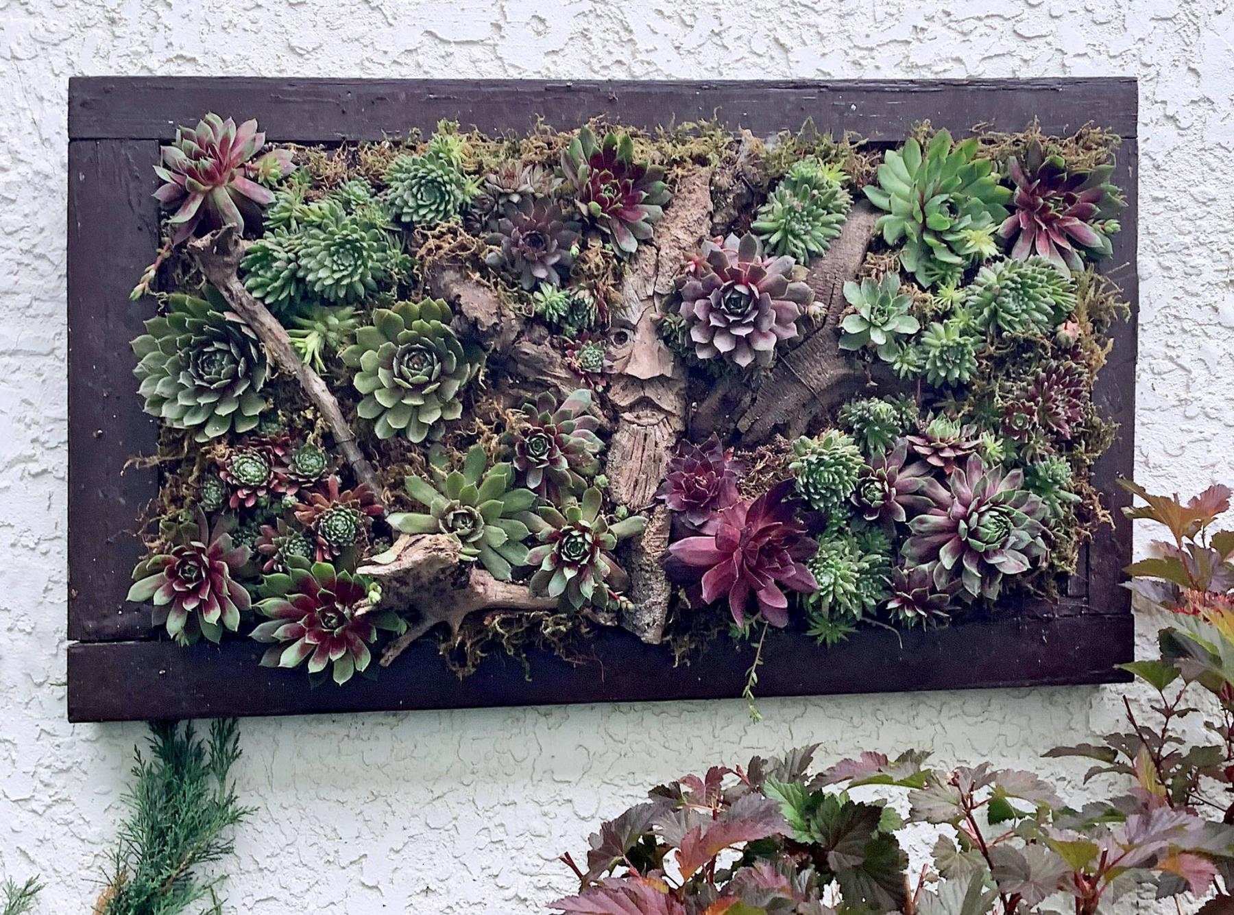 This handsome succulent living frame spends the winter buried in the ground beneath the insulating snow until it is uncovered in spring for another season of outdoor display.