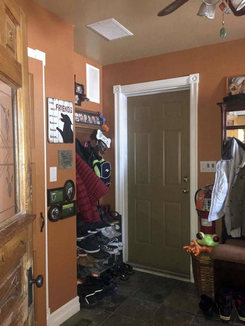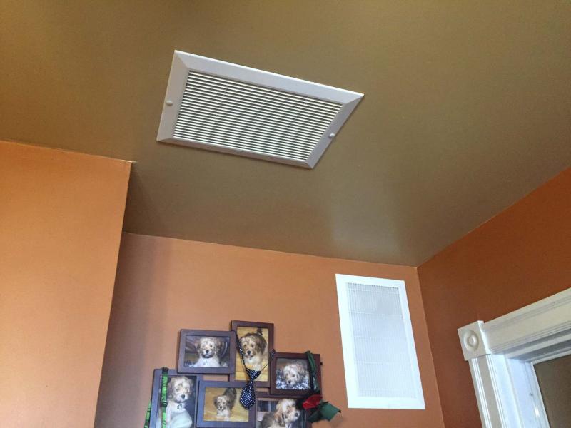 This foyer sits directly below the jacuzzi tub of the bathroom expansion. The ceiling vent allows hot air to rise into the cavity surrounding the tub's drain pipe.