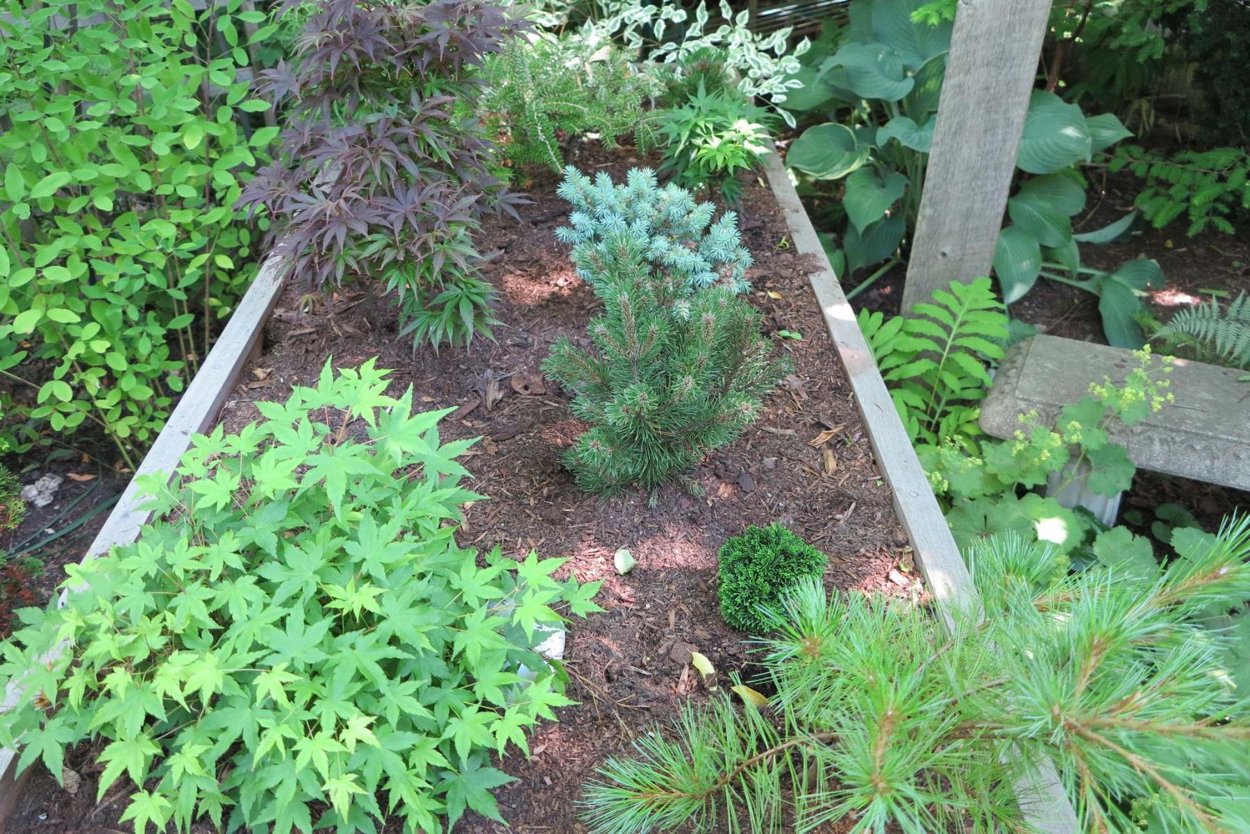 In a raised bed in her backyard she has combined miniature evergreens such as Pinus mugo Mitsch Mini with two different species of Japanese maple as well as Cornus alternifolia Argentea, which has a branching pattern like that of Pagoda dogwood. Harris says she finds it unbelievably satisfying to sit nearby and admire these great plants. "I’m also adding a few more evergreens to my garden because I’m mad for them."