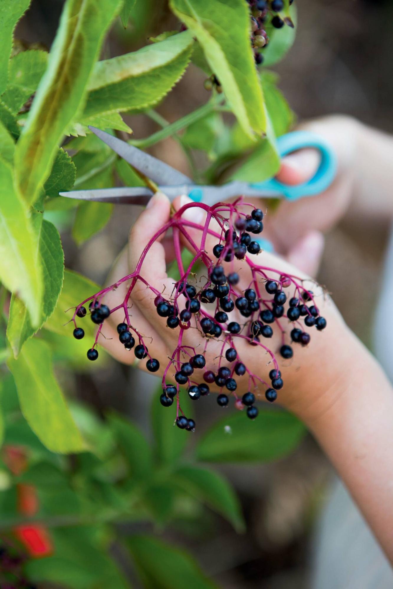 The shrub layer is one of the most versatile and hard-working layers in the edible garden, says Chung. There are so many types of edible shrubs to choose from. Haskap is one of her favourite fruiting shrubs. “It is such an underrated shrub. Haskap blooms so beautifully with those light sulfur yellow flowers. But it does need another pollinator buddy in order to get proper yields to make it worthy of the amount of space it needs.” More unusual choices suitable for our cold climate include sea buckthorn, goji berry, and elderberry shrubs. The fragrant white flowers of elderberry can be used to make a simple syrup. The dark berries are delicious in pies and preserves.
