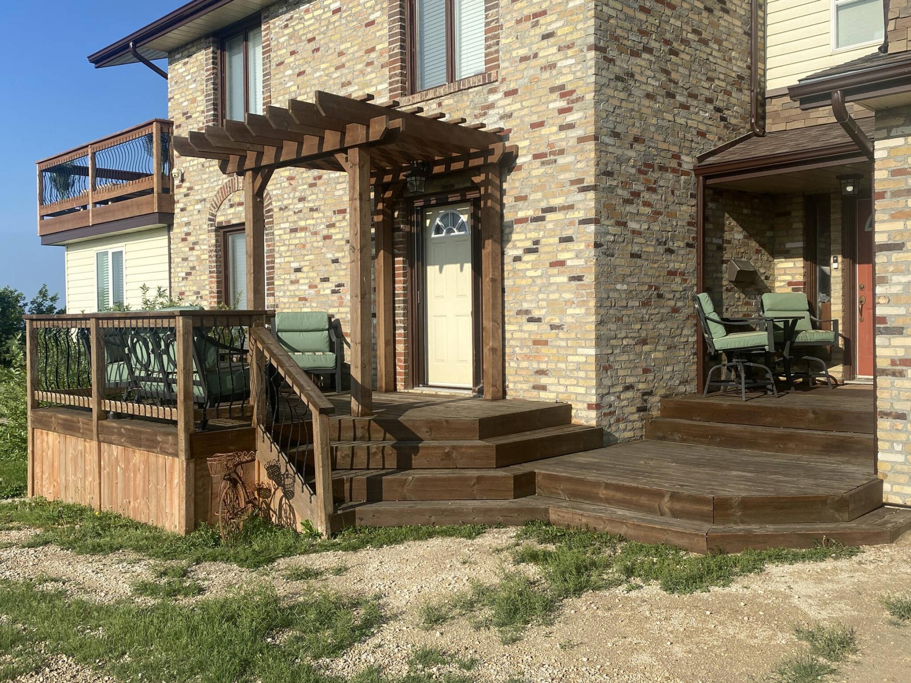 I use the word “attempt” because I’ve always held the belief that in this climate, it is extremely difficult to expect the topical stain to weather more than a couple winters without beginning to flake and peel. As such, it has become my policy regarding deck to “only build’em, never stain’em”. Should a client seek my advice on how best to revitalize a treated deck, my guidance mandates that the lumber be bleached nearly grey, which would indicate that the “treatment” of the treated lumber has all but faded away. Fundamentally, a treated lumber deck (in my opinion) should never be stained until the wood has become grey — by nature of the treatment process, treated lumber has been virtually sealed to lengthen the lifespan of the lumber by disallowing the over-absorption of moisture. As such, “staining” a treated deck is a topical process, and almost surely guarantees the stain will eventually flake and peel, because it cannot be absorbed properly by the lumber.