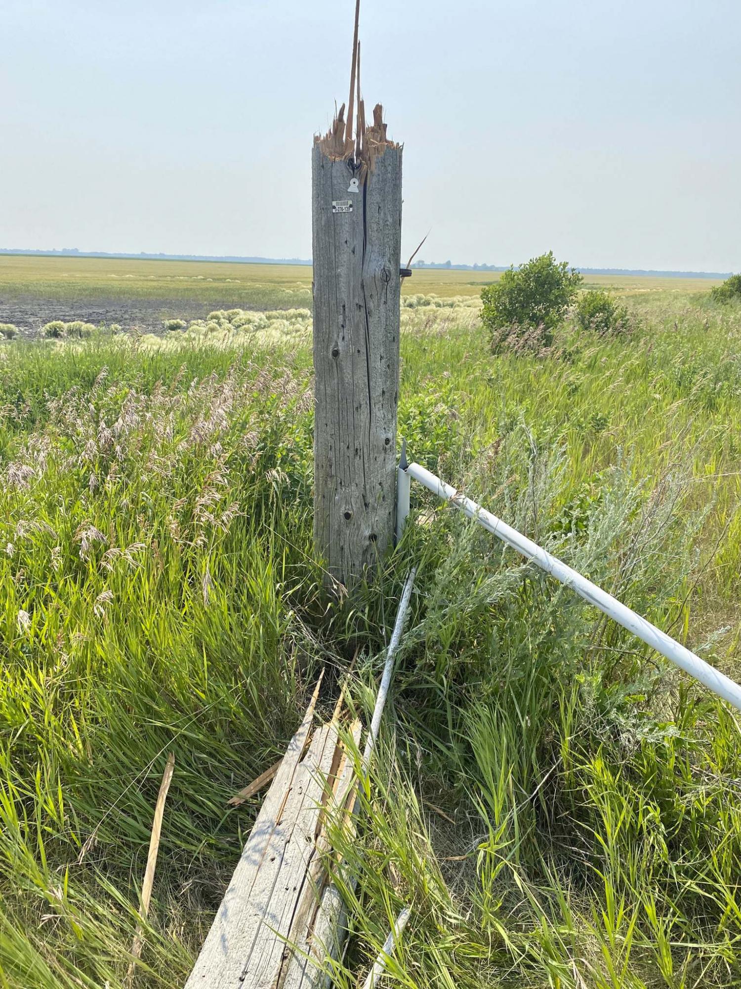 We were only a few minutes from home when my phone rang and it was a friend who works for Manitoba Hydro. He reported that the load on a truck had shifted on the highway and clipped the overhead line that supplies our property. Not only had the line been severed, the pole the transformer is mounted on had also snapped like a twig.