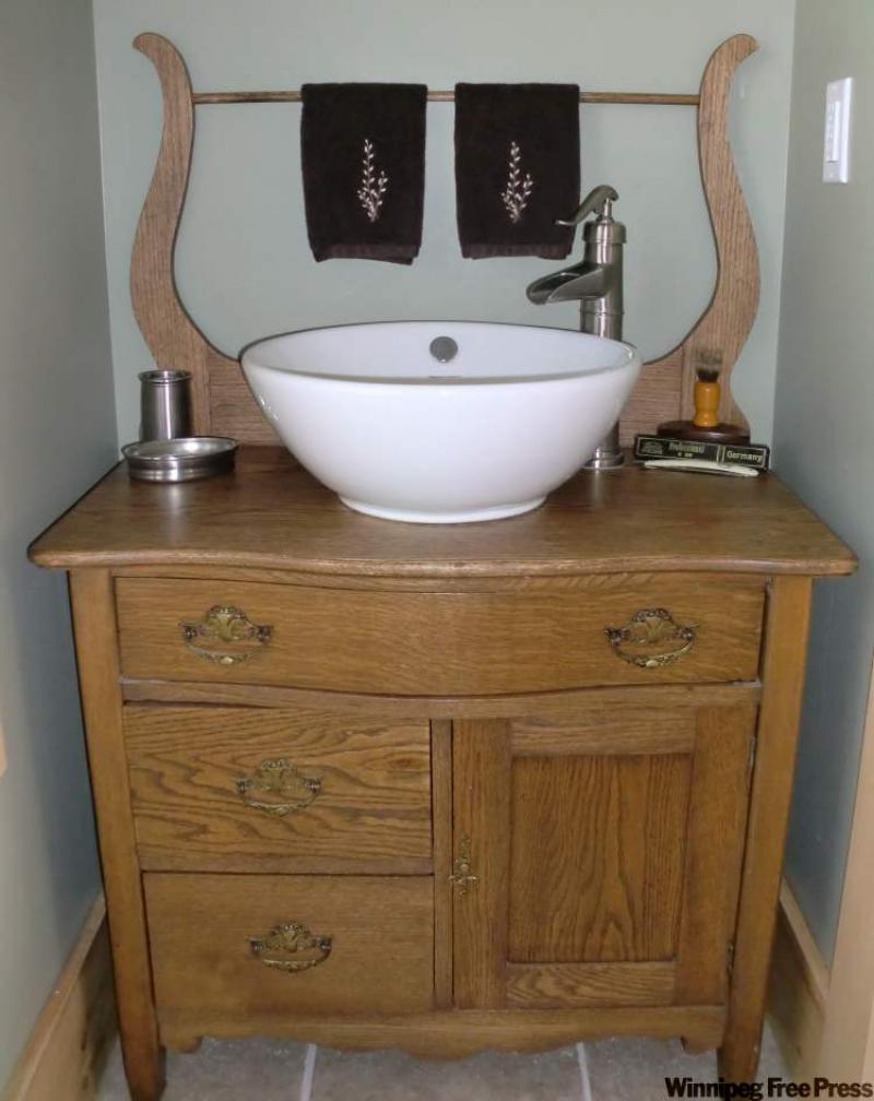 I would like to give you an update on my new bathroom. I emailed you close to two years ago following one of your articles to ask for your advice on doing my new bathroom in our retirement home on Lake of the Woods. You were most helpful and sent pictures of an antique vanity similar to the one I wanted to use.