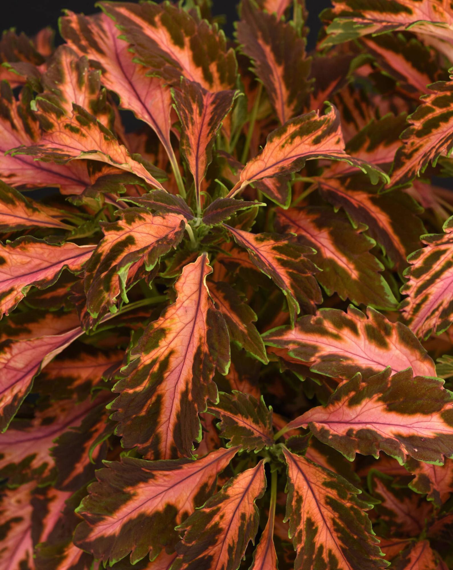 Coleus Premium Sun Coral Candy is an AAS Winner that has boldly patterned leaves.