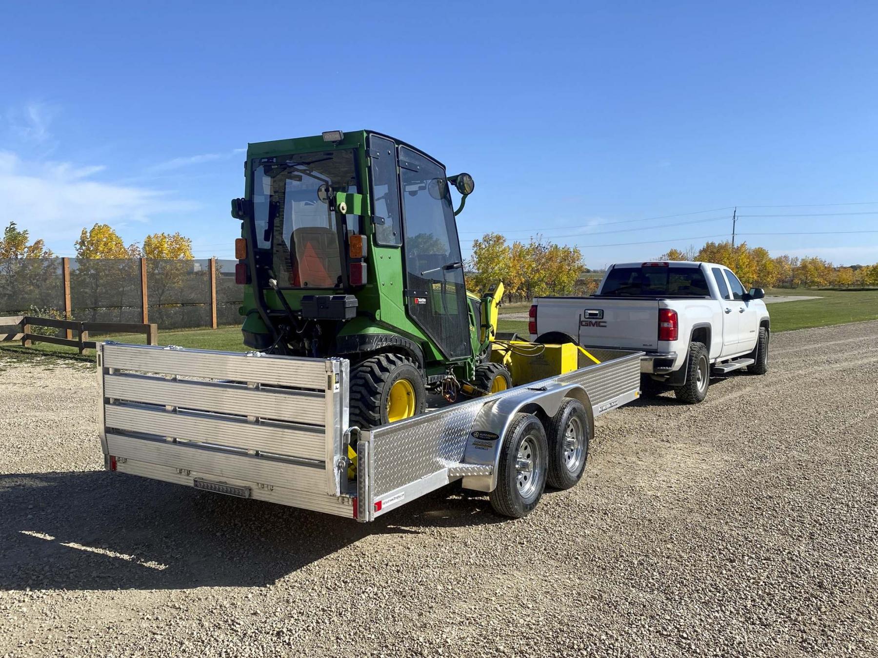 Before starting my search for the best trailer option, it was necessary to establish the hauling-weight requirement. My John Deere 1025R with cab, loaded with the summer front bucket and rear planer implements, resulted in the greatest potential weight, at roughly 3,500-4,000 pounds or so. As such, a trailer with a single axle rated at 3,500 pounds would not suffice. And although a single, 5,000-pound axle was available, it seemed reasonable that a trailer with tandem 3,500 axles would provide the greatest weight buffer.