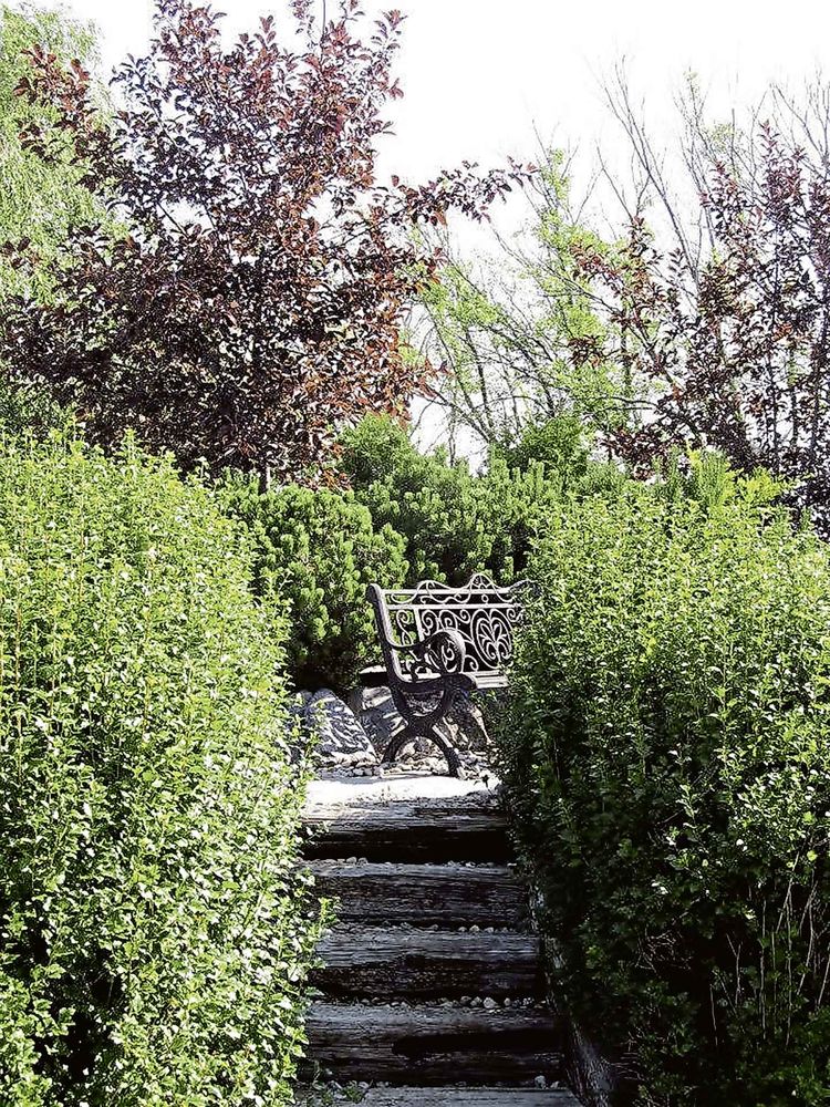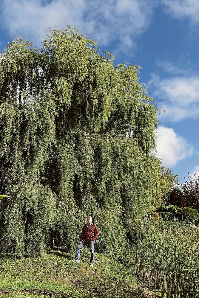 The backdrop to the postcard-pretty outdoor setting at Falk Nurseries includes a pond, waterfall, bridge and sitting areas framed by a magnificent Salix babylonica Lace Weeping Willow. Falk planted it himself 25 years ago. One of his favourite trees, it is a seedless weeping willow whose native origin is northern China. With proven zone 2 hardiness, this exotic looking, fast-growing specimen is tolerant of moist soil. Falk says it is a real beauty for larger spaces.