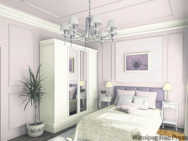 It's amazing just how much you can change the look of a room with a few pieces of wood trim. As you can see in this photograph (courtesy of Sico Paints), this bedroom initially had flat, plain walls but has been transformed with decorative moulding. Wood trim added to create faux panels on the walls and ceiling give this room grandeur and the architectural interest that it was lacking. By painting the trim the same colour as the walls, as seen here with a Sico Paint colour called Rose Stone, the detail of the decorative trim is not too gaudy or busy. Even the large cabinet in the room has additional trim that takes it from a box with doors to an interesting furniture item. The panel at the head of the bed is inset with textured wallpaper which gives it even more dimension. Overall, the room would be quite boring without all of these details.
