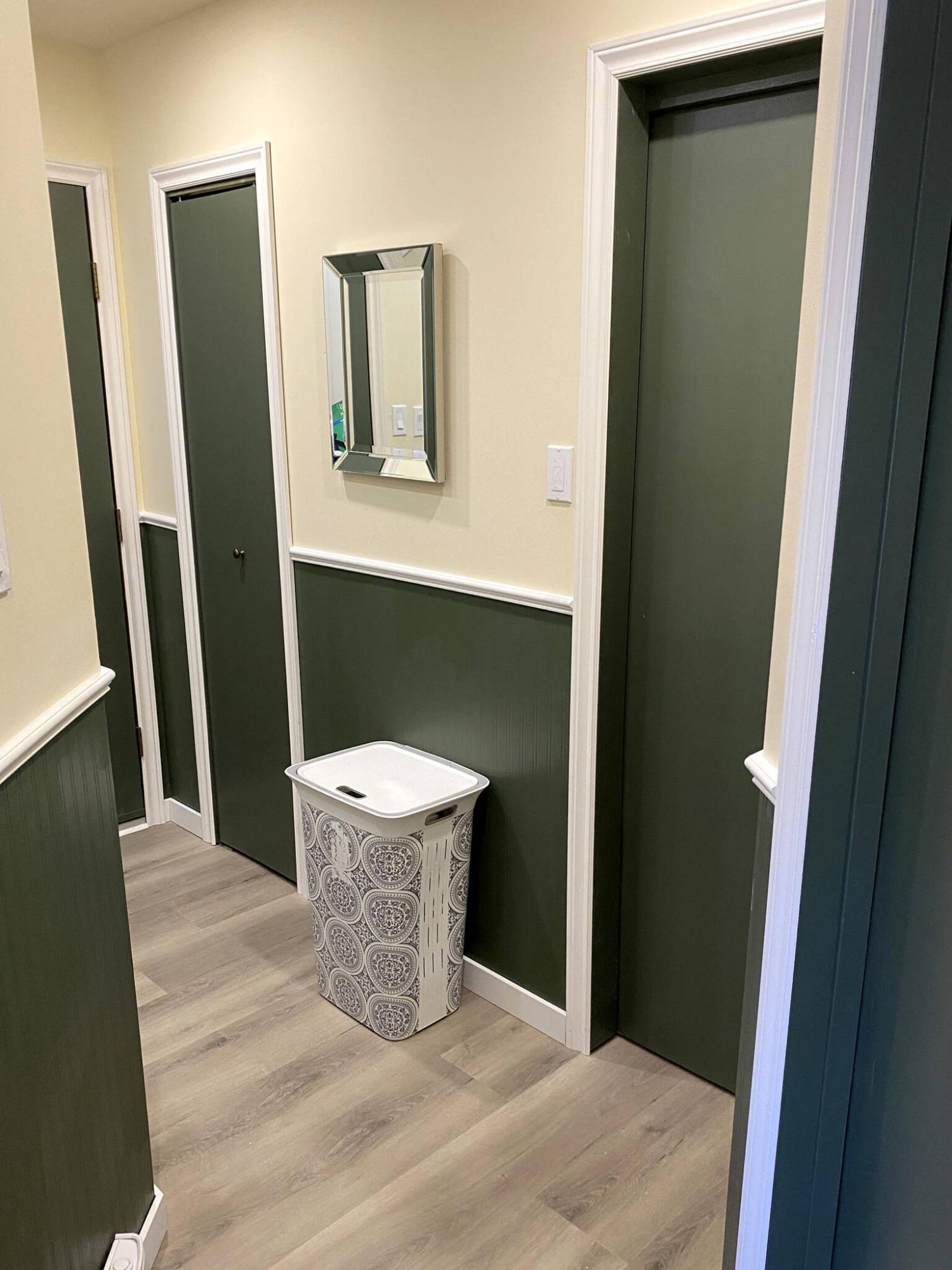 With the introduction of the new white baseboards, the hallway’s appearance seemed odd, and felt somewhat unfinished. I would have been remiss not to suggest to the homeowners that the entire array of trim throughout the hallway be updated to match the newly installed baseboards. After showing them a few examples, they agreed and the extra task was added to the project.
