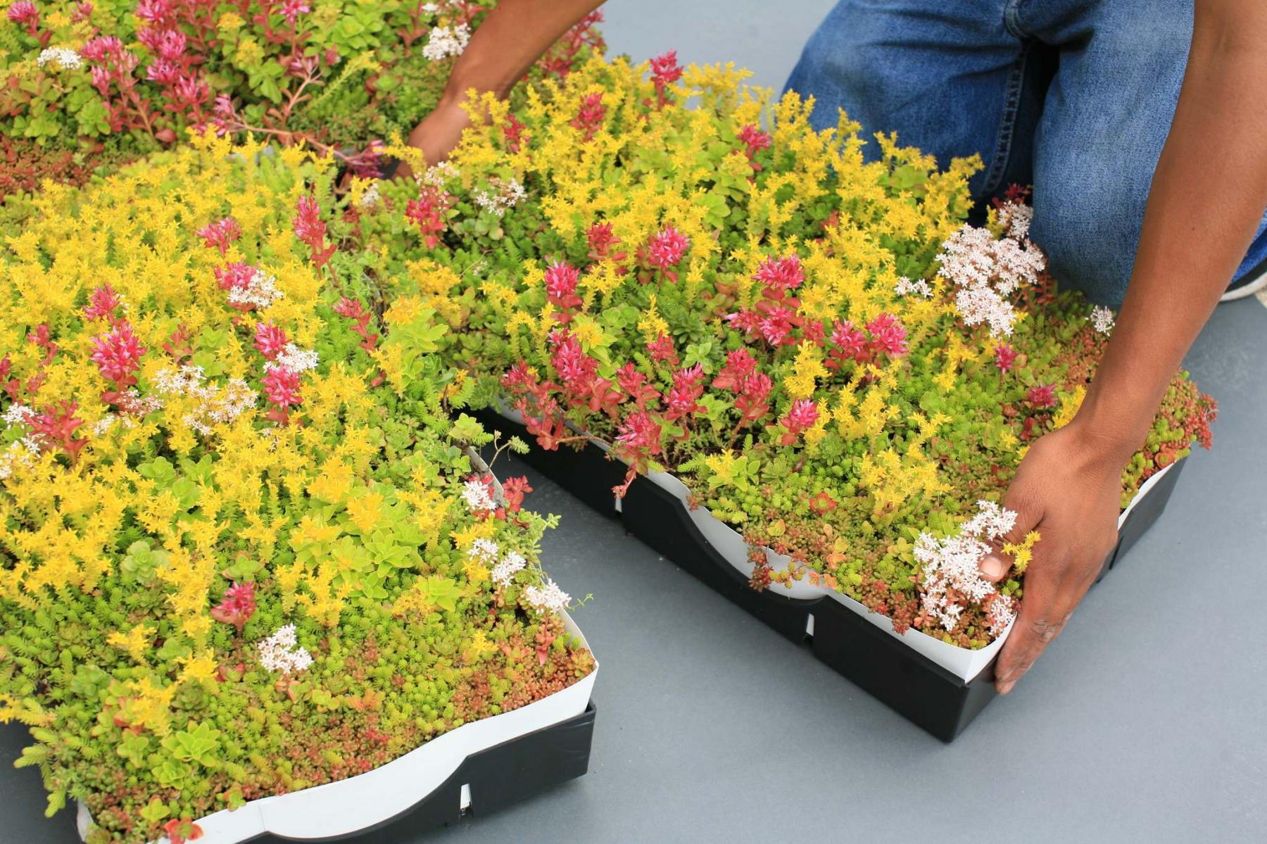 "Our product is modular, meaning the plants, soil and drainage layer are built-in to a plastic container that is placed on the site after being fully matured," says Amber Ponce, business development manager at LiveRoof. The modular system has a plastic sleeve that is removed after the modules are placed on the roof for a seamless finish. "Most green roofs in Northern climates include a selection of cold-hardy sedums, a low-growing, shallow-rooting, water-conserving and drought-tolerant genus of plants typically native to alpine regions," says Ponce. If the soil is deep enough (150 to 200 mm), then a selection of traditional garden perennials and grasses may be successfully supported in southern Manitoba’s zone 3b climate.
