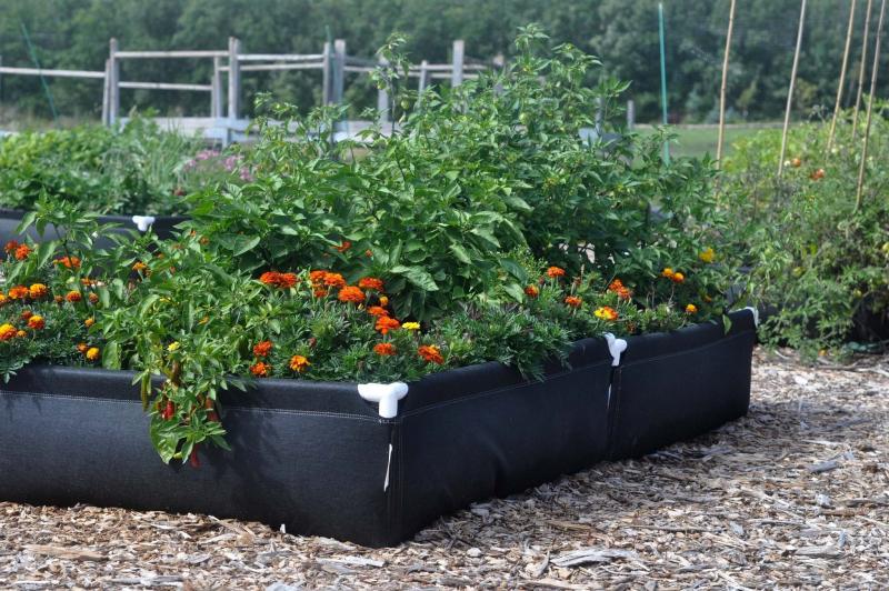 Geoplanters are made from a long lasting, breathable fabric that automatically root-prunes whatever vegetables or ornamentals are being grown in them.
