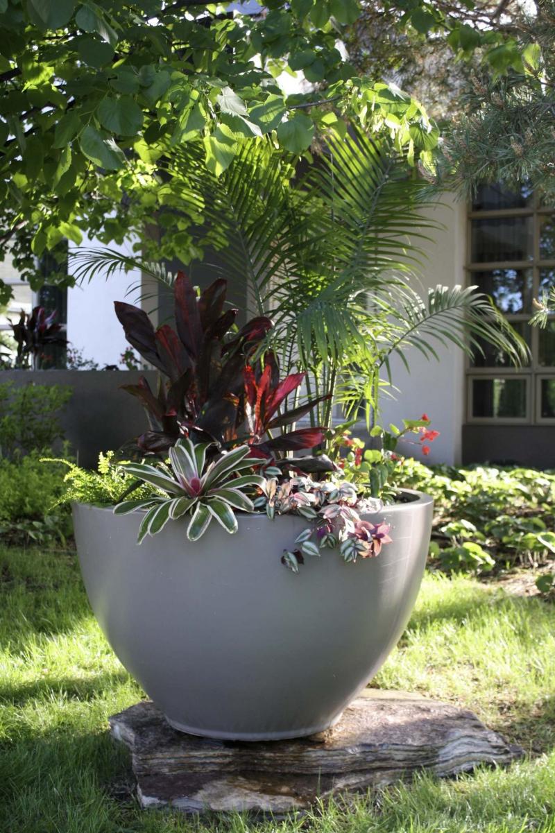 A common mistake when creating a container design, Nielsen says, is to use plants that are disproportionate in size to the container you are using. The use of diverse textures, artful and strategic mixing and matching, as well as careful attention to right plant, right location, a regular watering schedule, routine deadheading and pinching back as needed, will ensure a beautiful container display.
