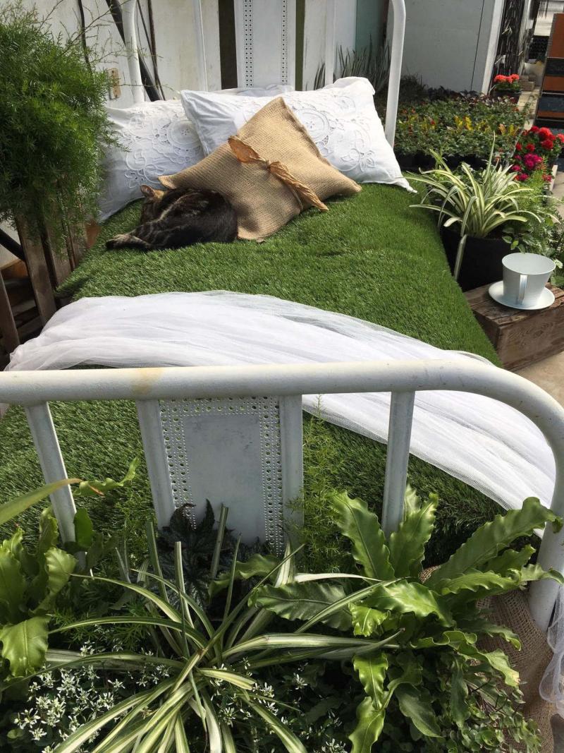 When I visited New Leaf earlier this spring, I was inspired by a unique grouping of foliage plants arranged at the foot of a vintage iron bed: Bird’s nest fern, asparagus fern, spider plant, Callisia repens, Euphorbia Stardust Super Flash, fibre optic grass and Rex begonia.