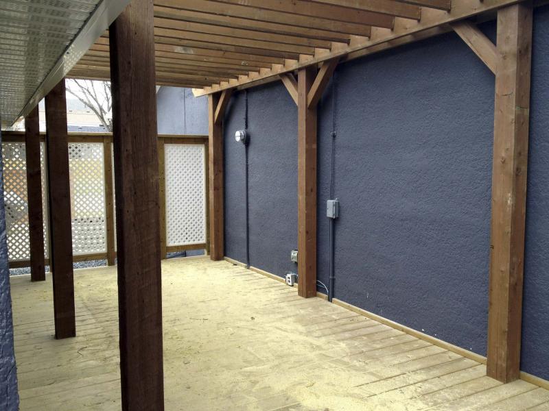 The existing 20-by-12-foot low-level deck had been built between the rear of the establishment and the garage, adjacent to the back-lane access.
