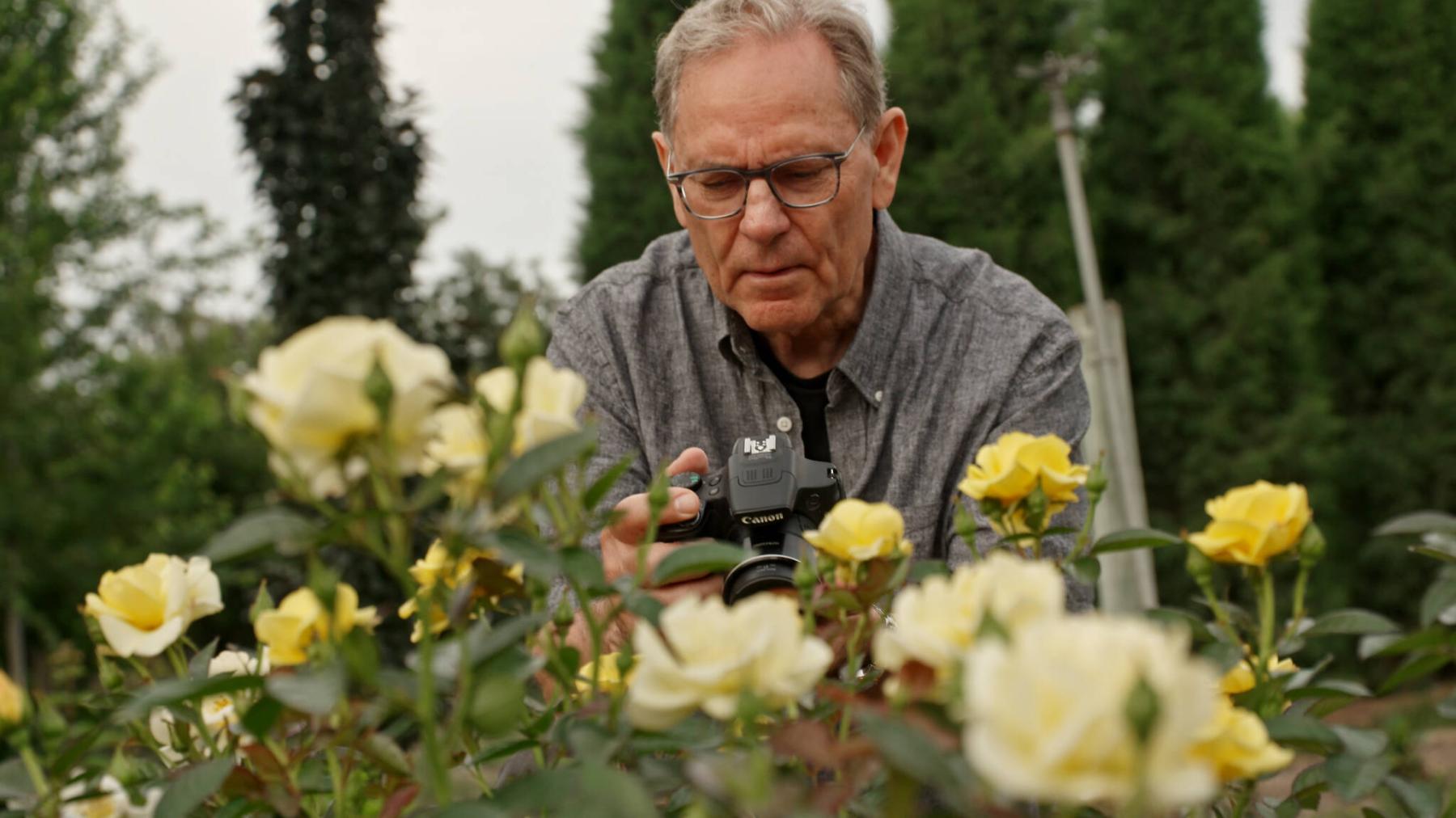 In the making of this series, Toews and Bradley crisscrossed the country. Filming began in the Eastern Townships in Quebec in the fall of 2022. “It was the best time to capture the glorious fall colour,” says Bradley. Filming during Canada’s 2023 wildfire season, the most destructive ever recorded, proved challenging at times. Rick Durand, featured in the episode Gardening Over Decades, is a well-known prairie tree breeder and tree researcher who lives in West Kelowna. At times during filming, smoke turned the sky yellow-red and road closures were in effect due to the fast-moving wildfire.