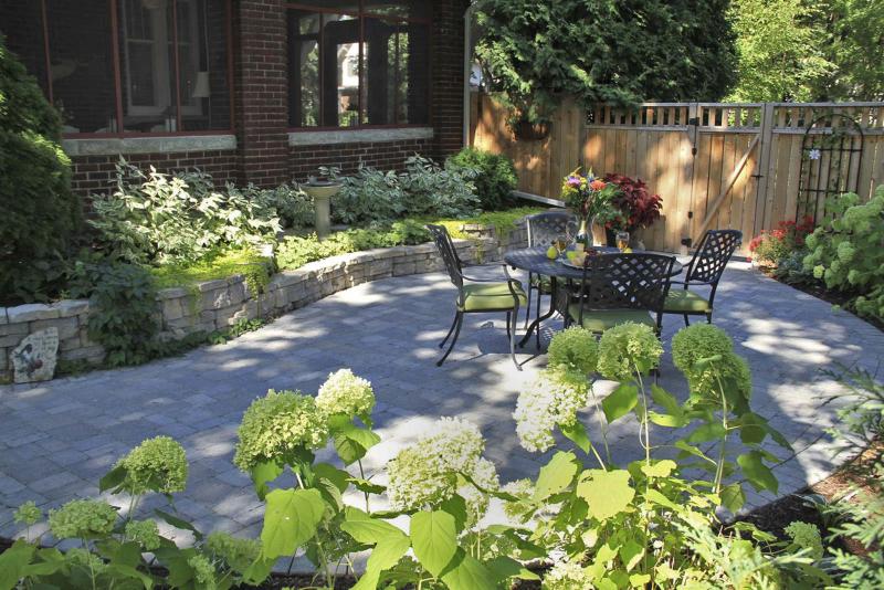 Mixing materials to create borders or inlays that serve as a focal point helps to accentuate and define a space, says Dueck. "Some people want their patio table, for example, to sit on a section with flagstone," says Dueck. "The effect is that of an area rug, which adds to the intimacy of the outdoor space."