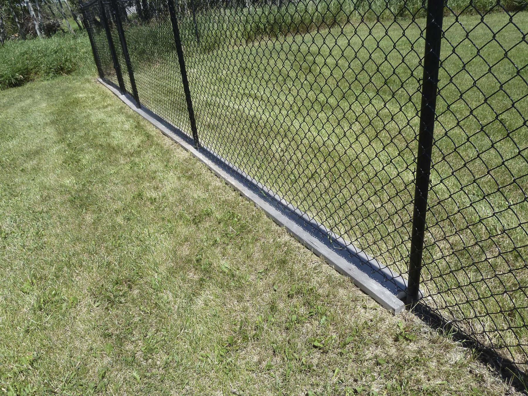 I chose an eight-inch width so I can mow without getting too close to the chain link. It also wouldn’t hurt to sink them a bit if you can, to make for guaranteed mower clearance, but I haven’t done so and it still works fine.