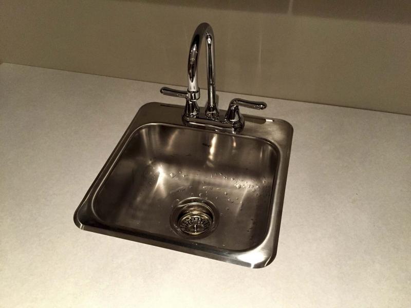 Don Kennedy’s lower level bar sink installed atop an arbrite countertop.