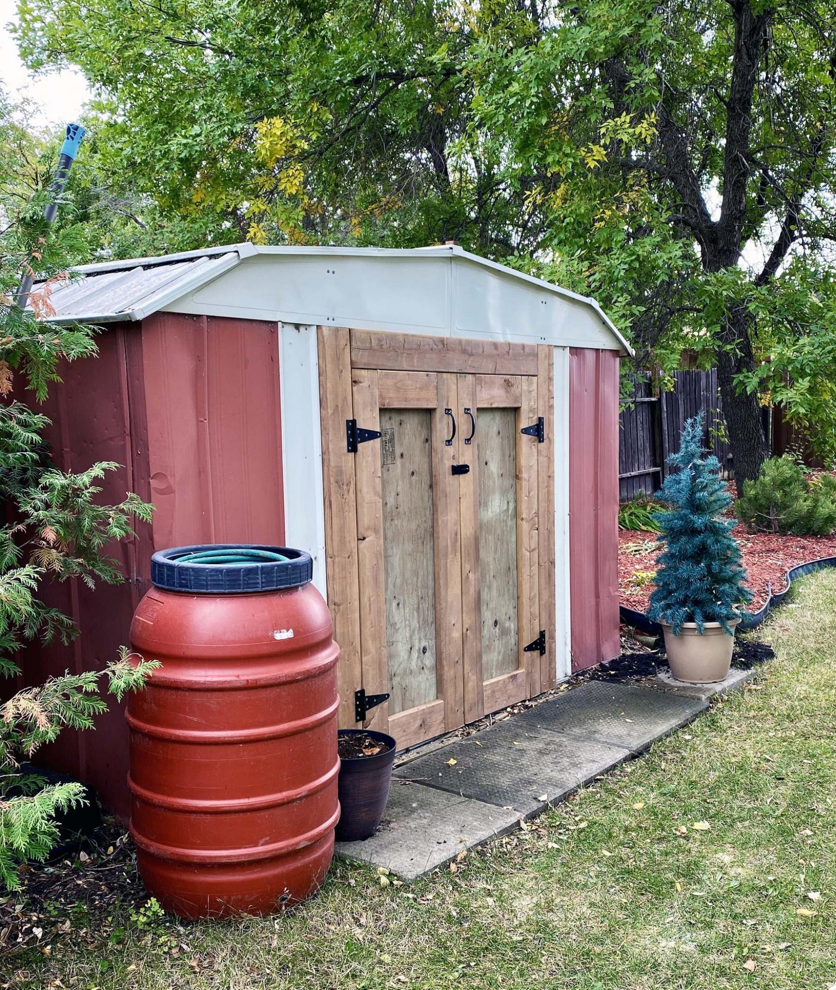 That said, there was no place to store the lawn mower, gardening tools, and bicycles, so we had a shed. For years, that small, green and white metal shed became our outdoor yard locker. It served its purpose, but the crude sliding doors were difficult to open and close.