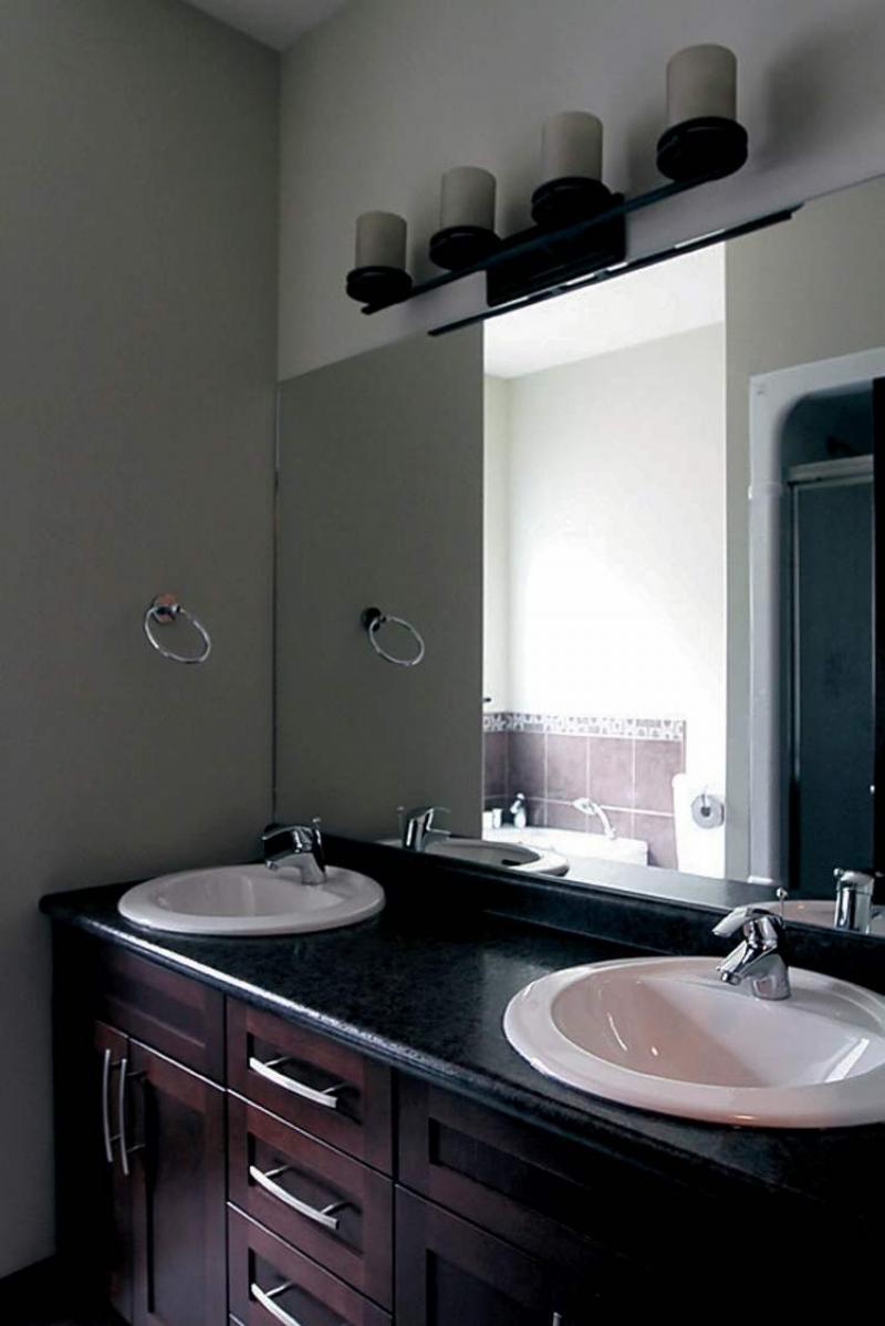 "The features that stand out to me are the granite counter tops, dark three-quarter-inch maple hardwoods and little details like a coffee-coloured glass tile backsplash that perfectly complements the dark (espresso) maple cabinets," van den Broek says. "There's all kinds of counter and cabinet space, and there's even a double sink underneath a low-silled window."